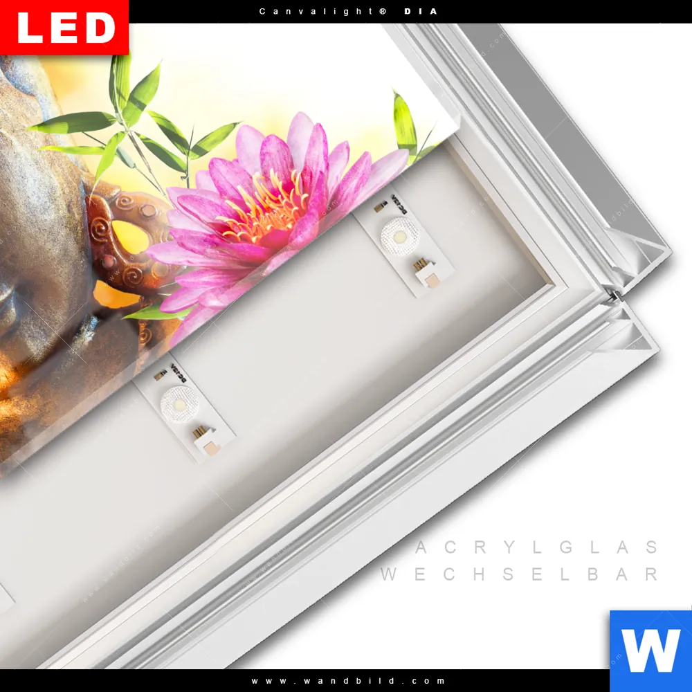 LED-Glasbild mit austauschbarem Acrylglas-Druck (Wechselbild)