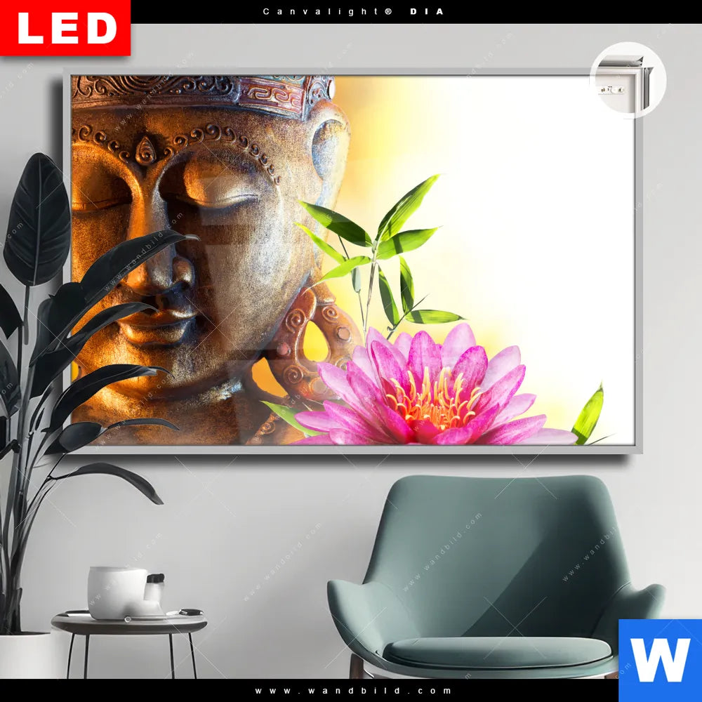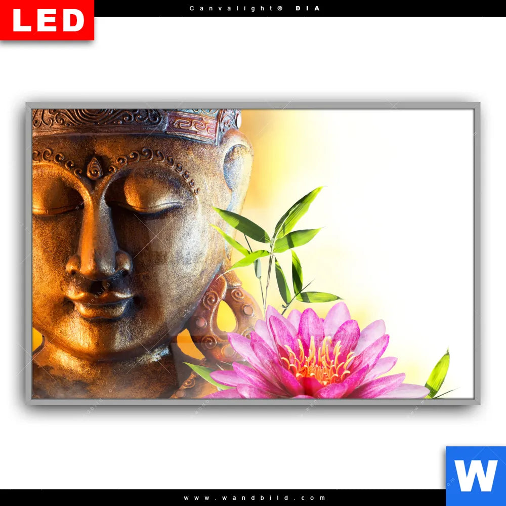 Canvalight® DIA Leuchtbild | Buddha Kopf & Seerose | Querformat