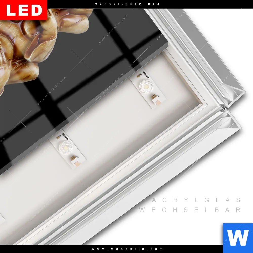 LED-Glasbild mit austauschbarem Acrylglas-Druck (Wechselbild)