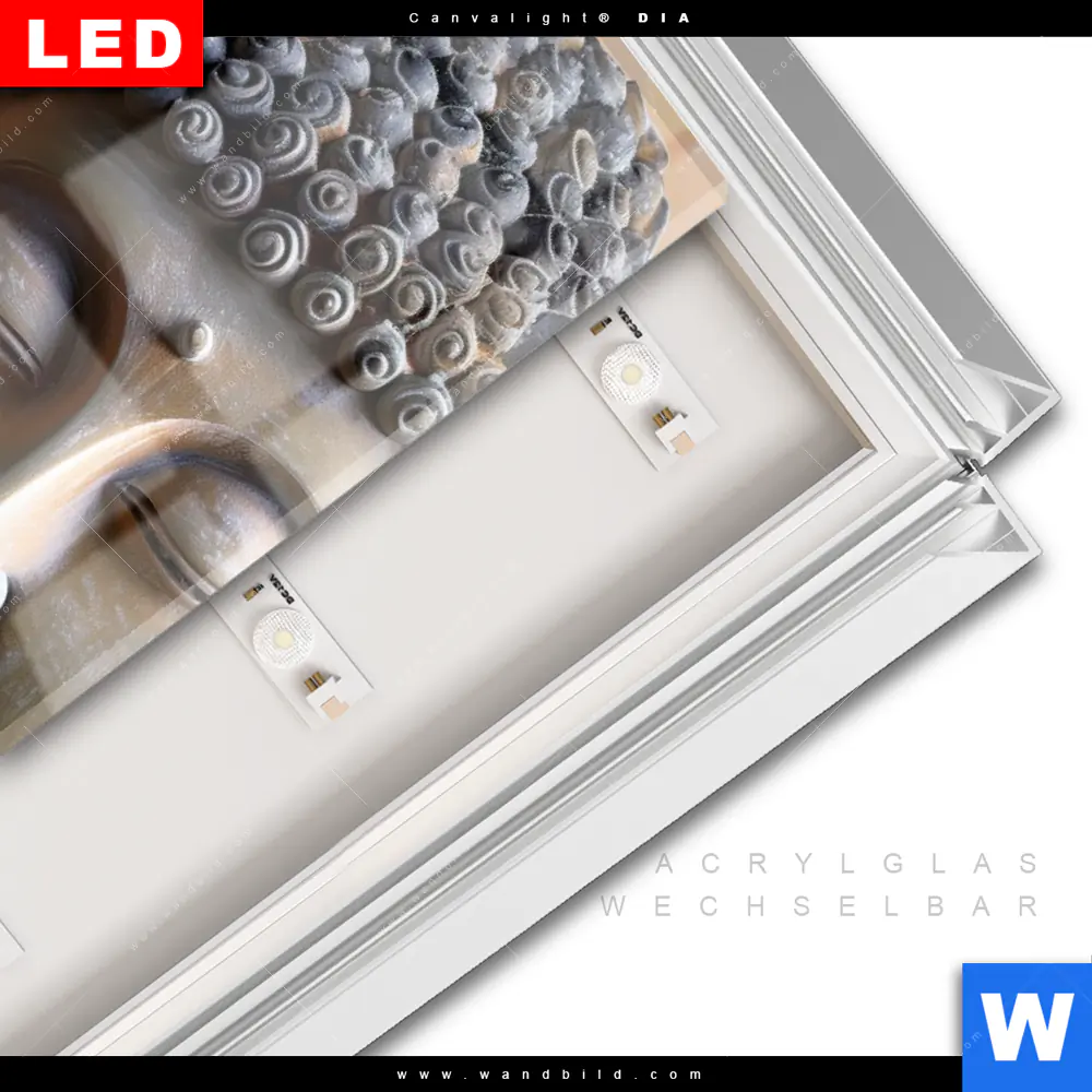 LED-Glasbild mit austauschbarem Acrylglas-Druck (Wechselbild)