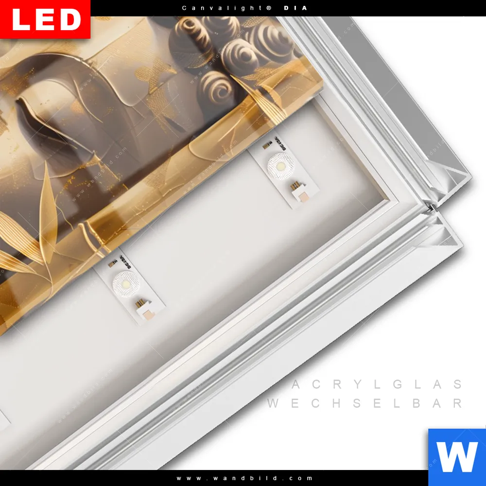 LED-Glasbild mit austauschbarem Acrylglas-Druck (Wechselbild)