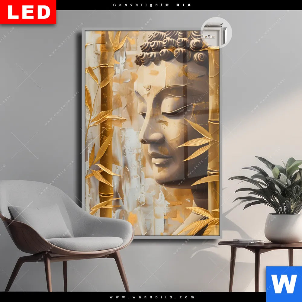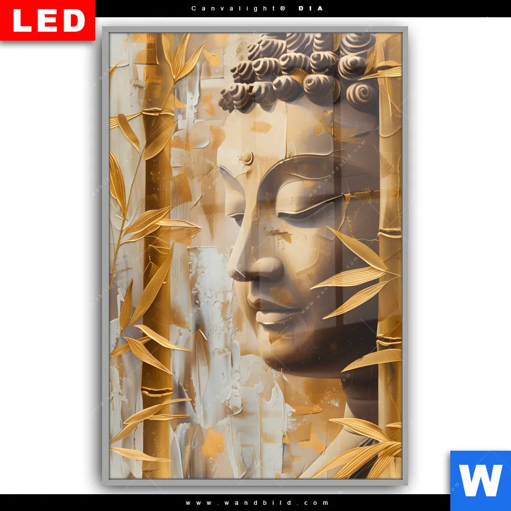 Canvalight® DIA Leuchtbild | Buddha-Statue im goldenen Bambus | Hochformat