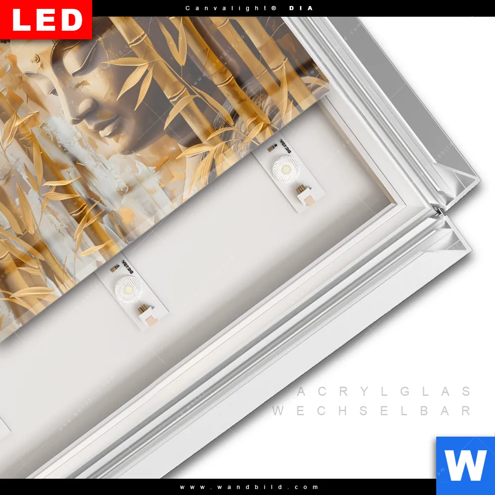 LED-Glasbild mit austauschbarem Acrylglas-Druck (Wechselbild)
