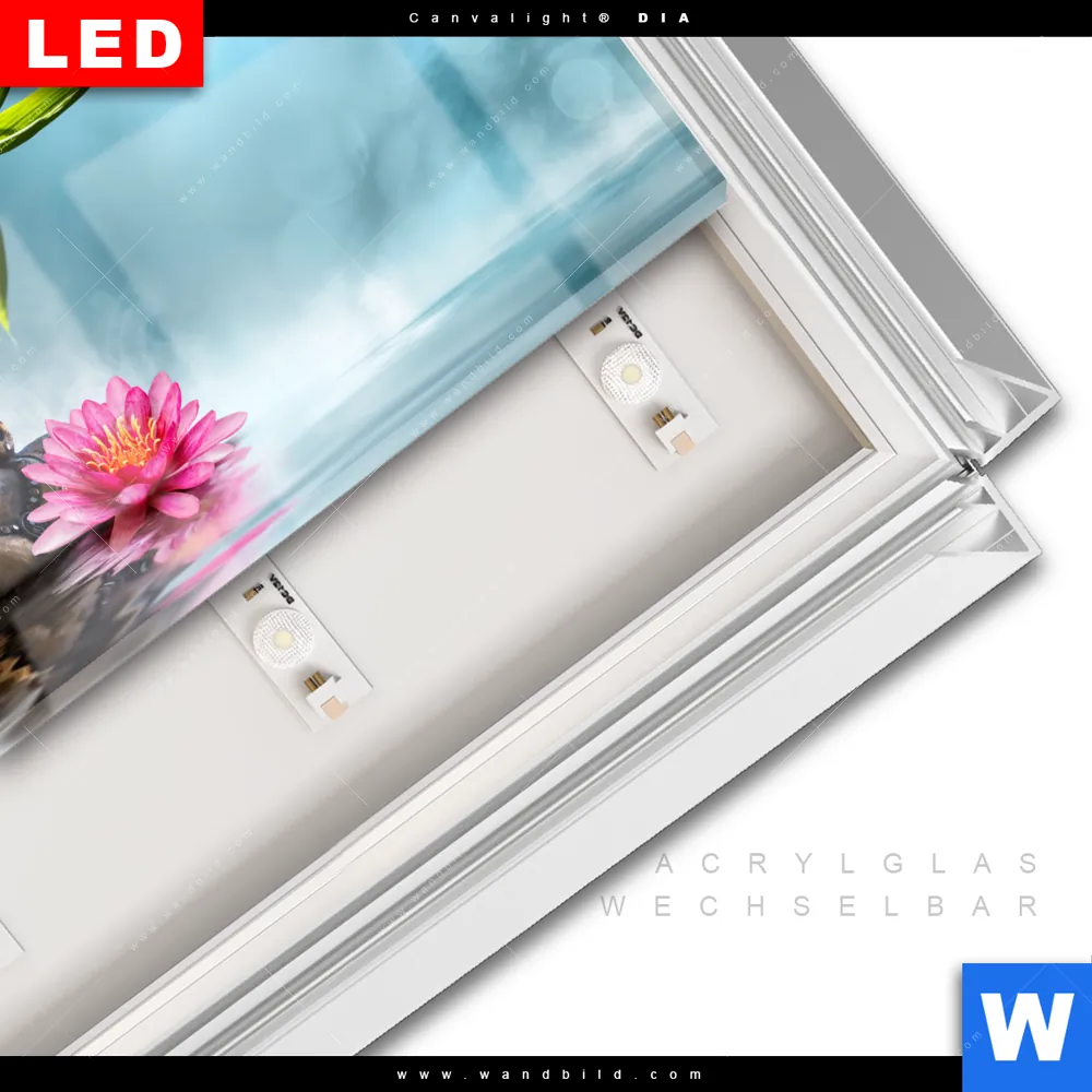 LED-Glasbild mit austauschbarem Acrylglas-Druck (Wechselbild)