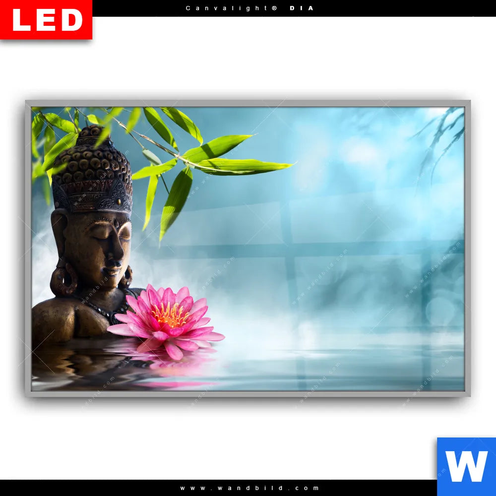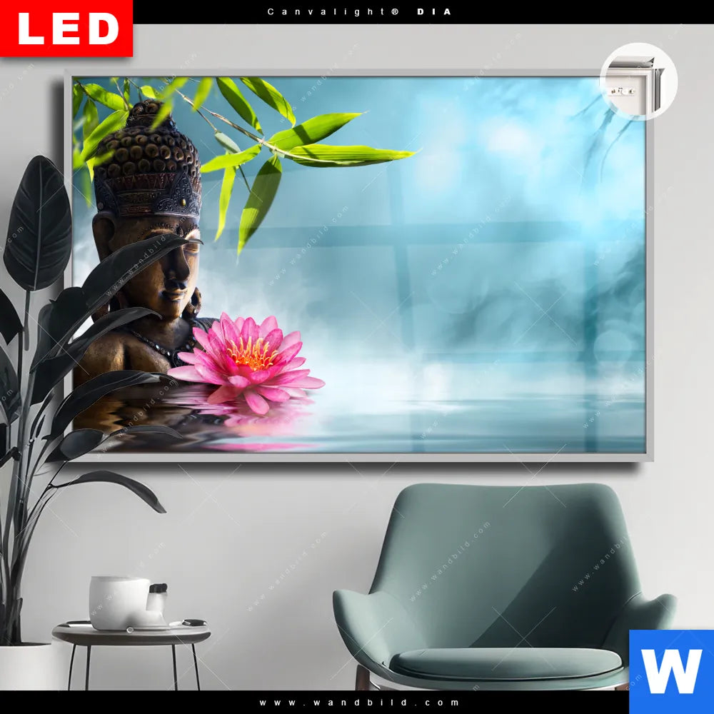 Canvalight® DIA Leuchtbild | Buddha Statue mit Seerose | Querformat
