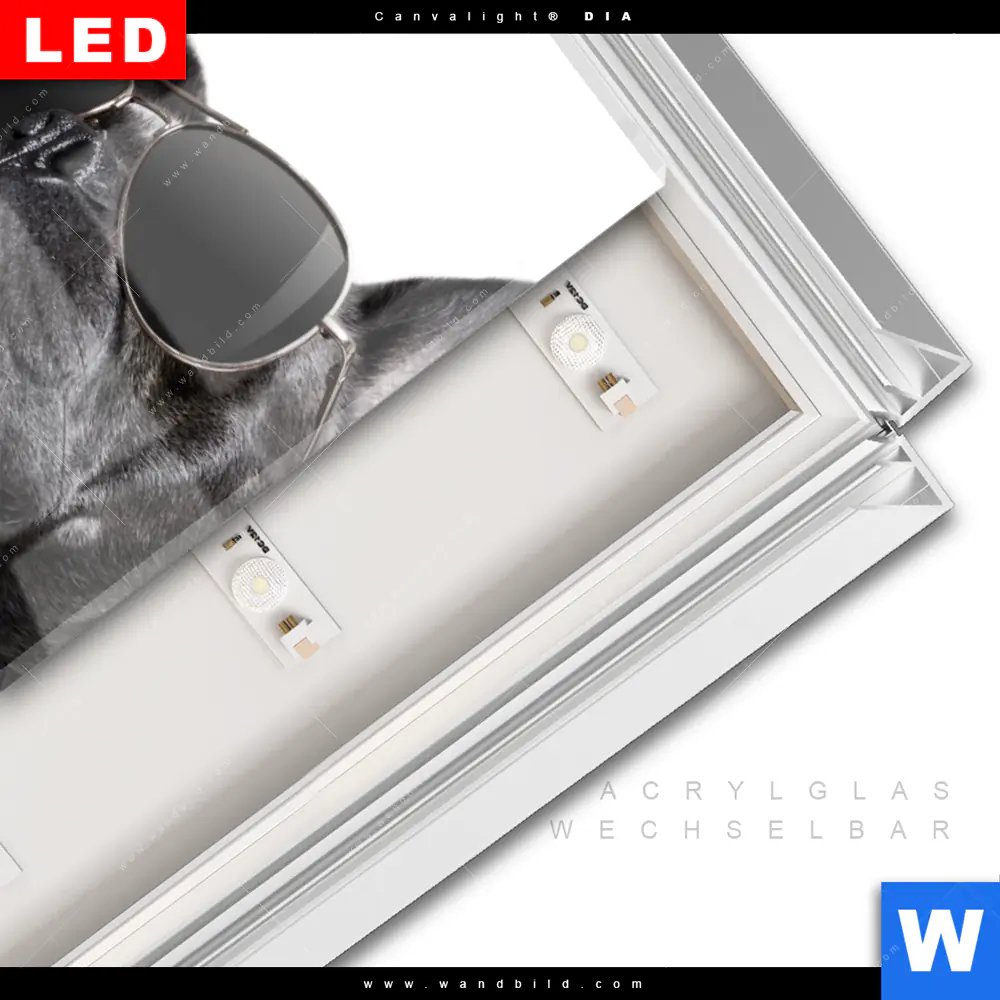 LED-Glasbild mit austauschbarem Acrylglas-Druck (Wechselbild)