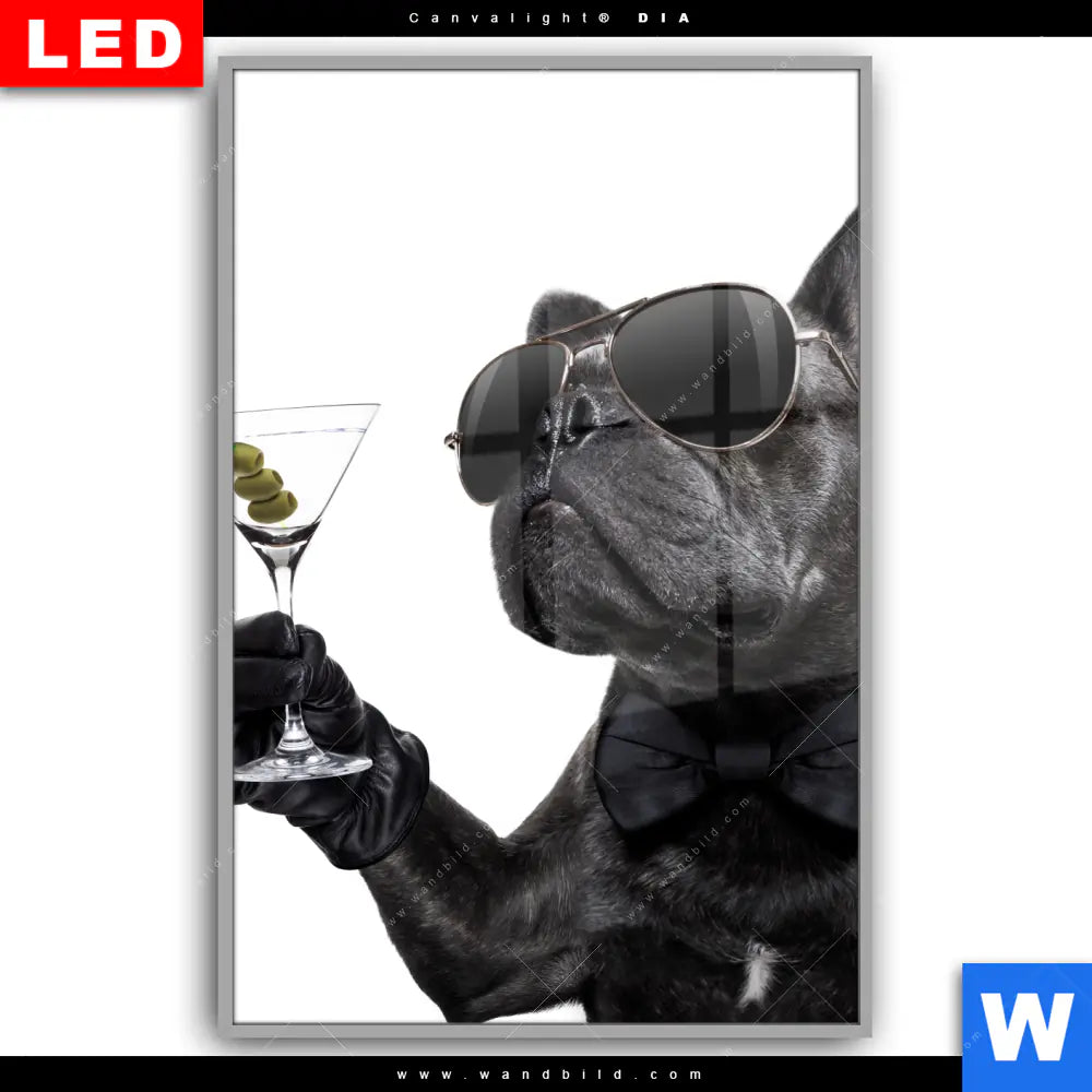 Canvalight® DIA Leuchtbild | Bulldogge mit Martini | Hochformat