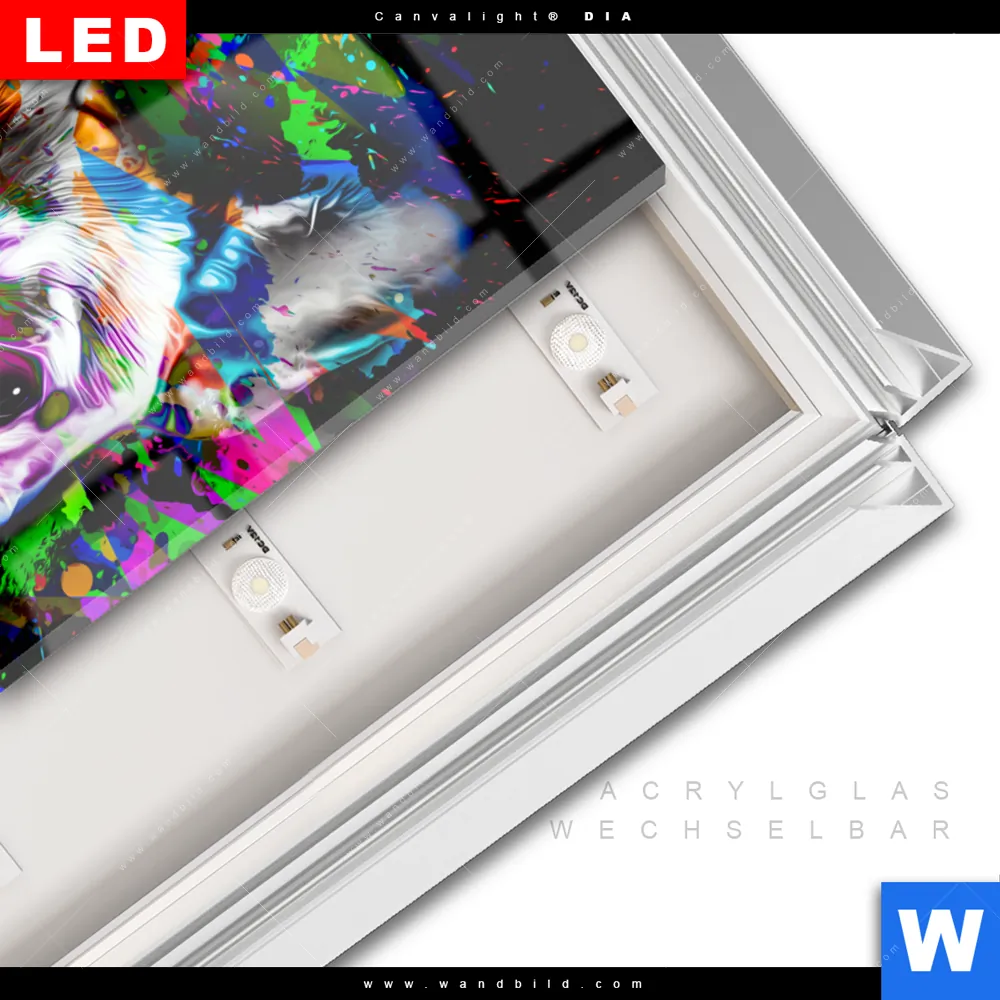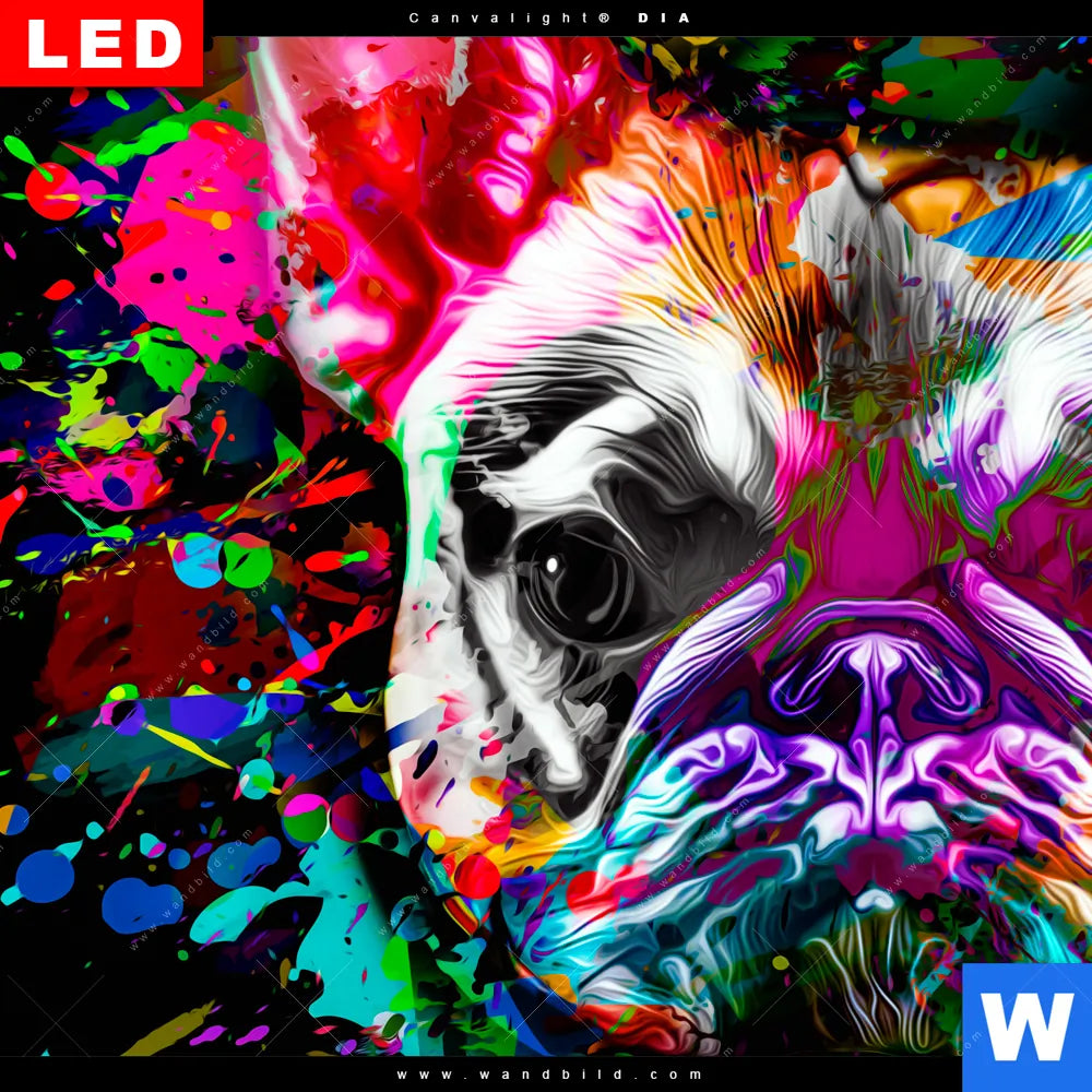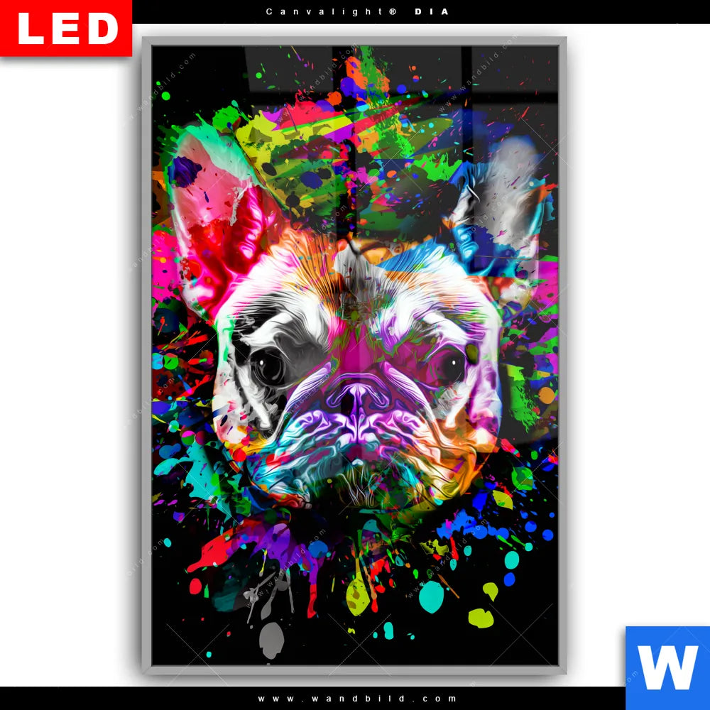 Canvalight® DIA Leuchtbild | Bunte Bulldogge Schwarz | Hochformat