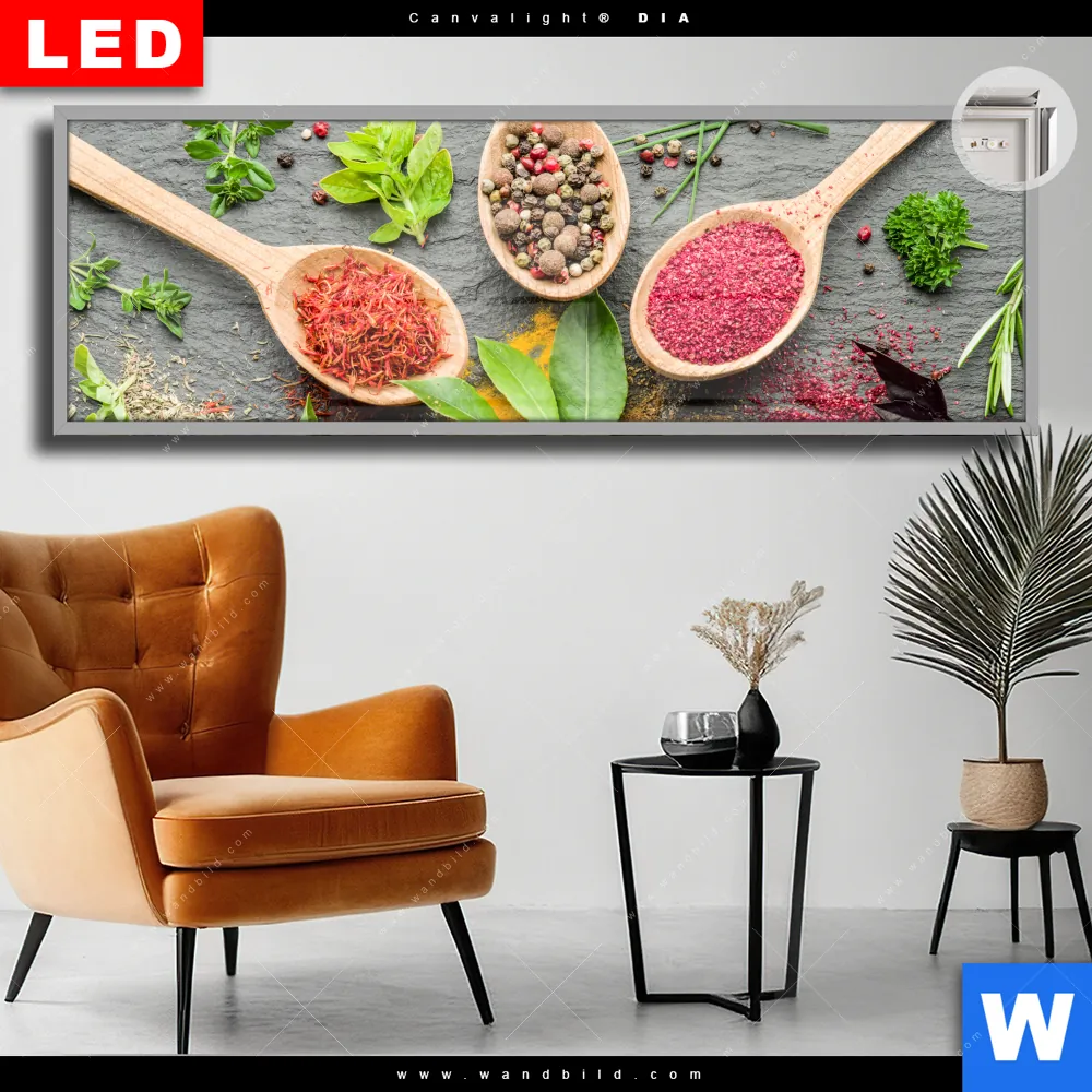 Canvalight® DIA Leuchtbild | Bunte Gewürze in Holzlöffeln | Panorama