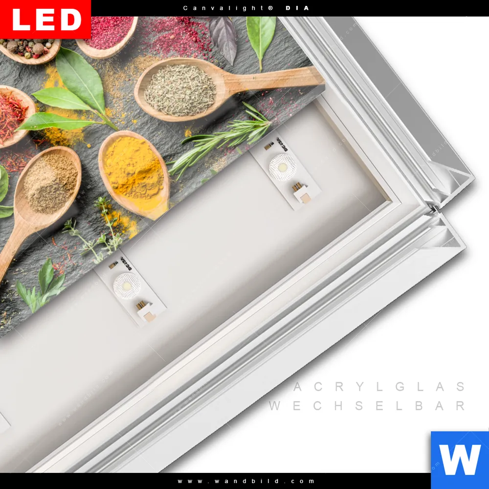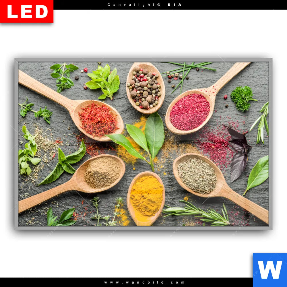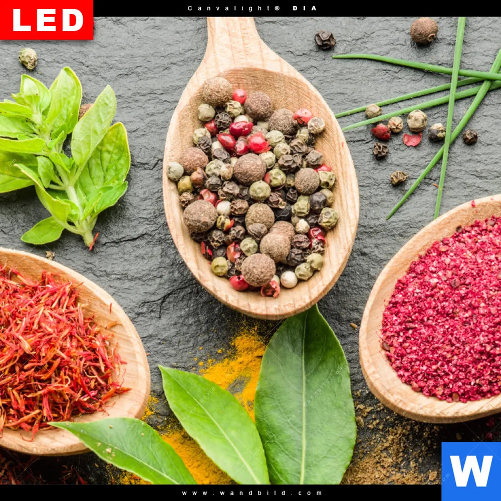 Canvalight® DIA Leuchtbild | Bunte Gewürze in Holzlöffeln | Querformat