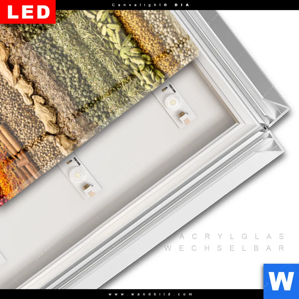 LED-Glasbild mit austauschbarem Acrylglas-Druck (Wechselbild)