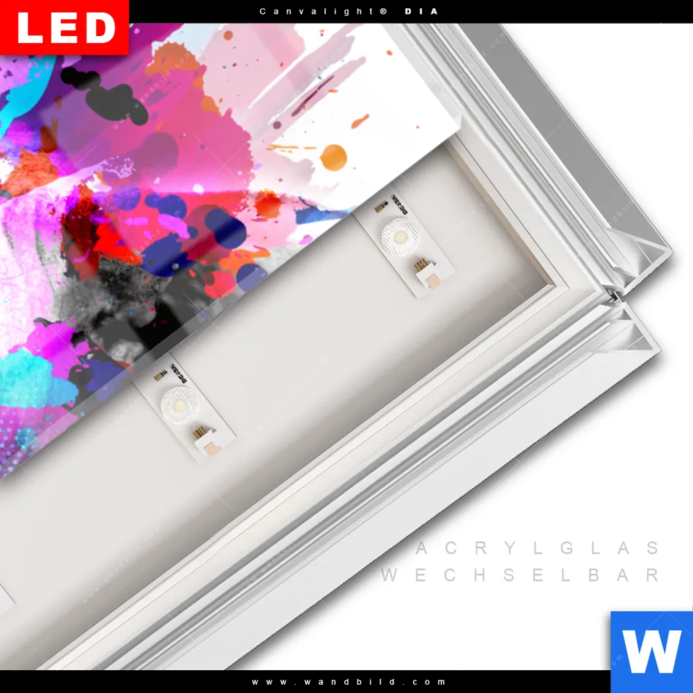 LED-Glasbild mit austauschbarem Acrylglas-Druck (Wechselbild)