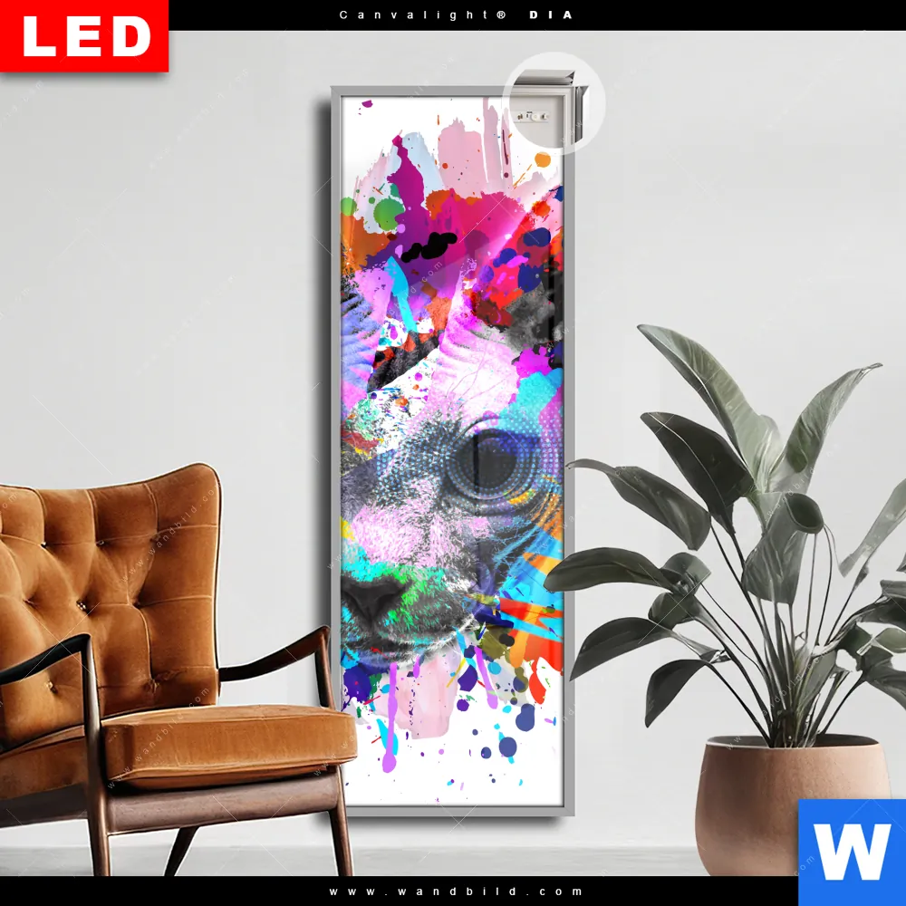 Canvalight® DIA Leuchtbild | Bunte Sphynx Weiß | Schmal
