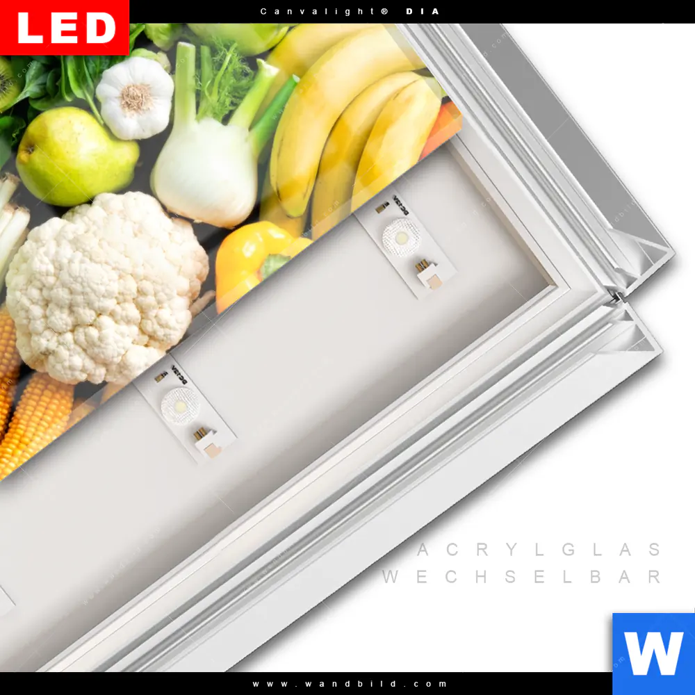 LED-Glasbild mit austauschbarem Acrylglas-Druck (Wechselbild)