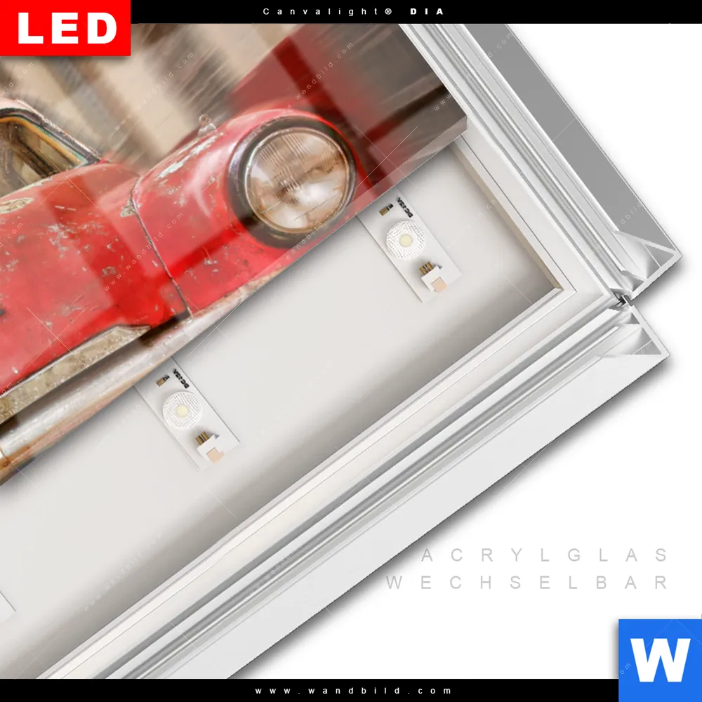 Leuchtbild Acrylglas Canvalight® DIA | Bunte vintage Oldtimer | Panorama