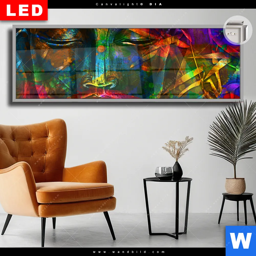 Canvalight® DIA Leuchtbild | Bunter Buddha | Panorama