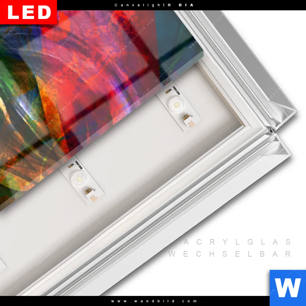 LED-Glasbild mit austauschbarem Acrylglas-Druck (Wechselbild)
