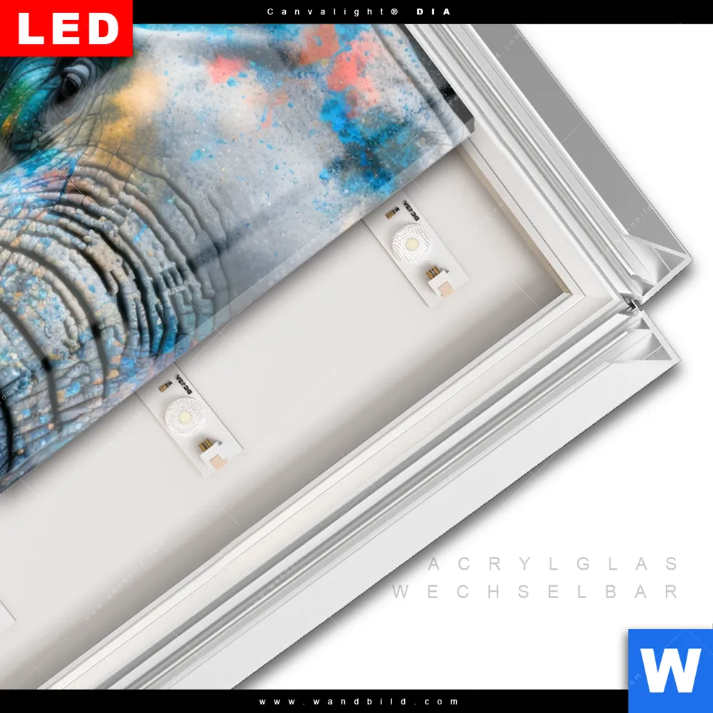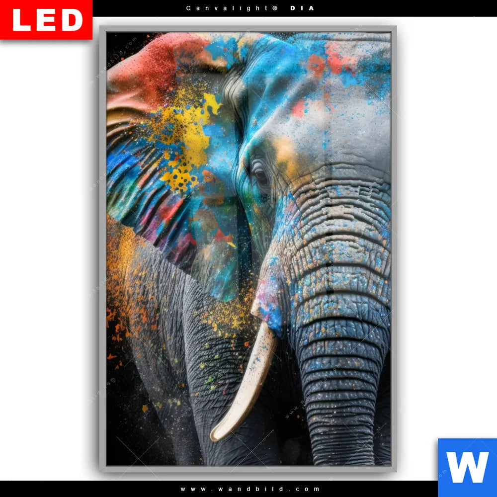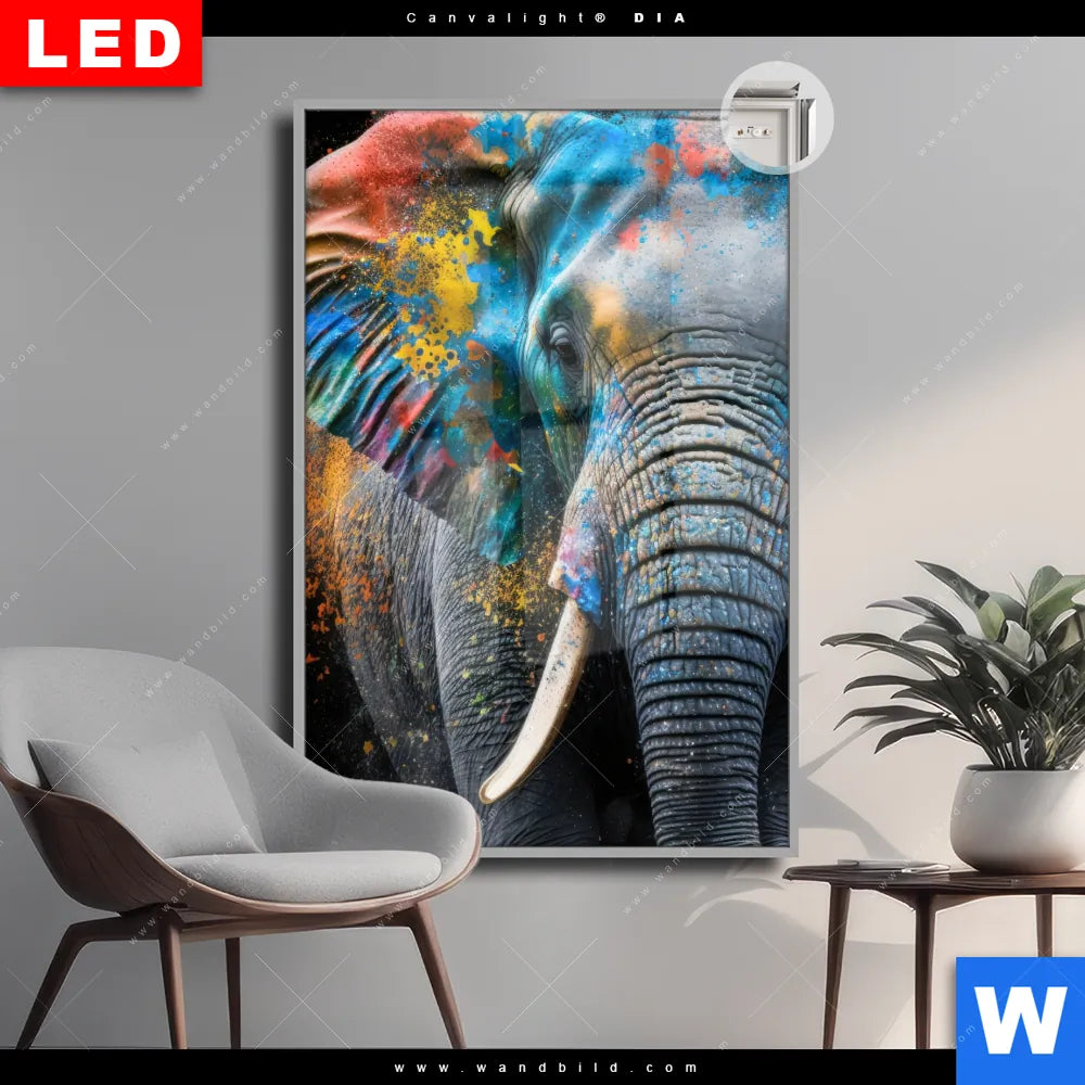 Canvalight® DIA Leuchtbild | Bunter Elefant | Hochformat