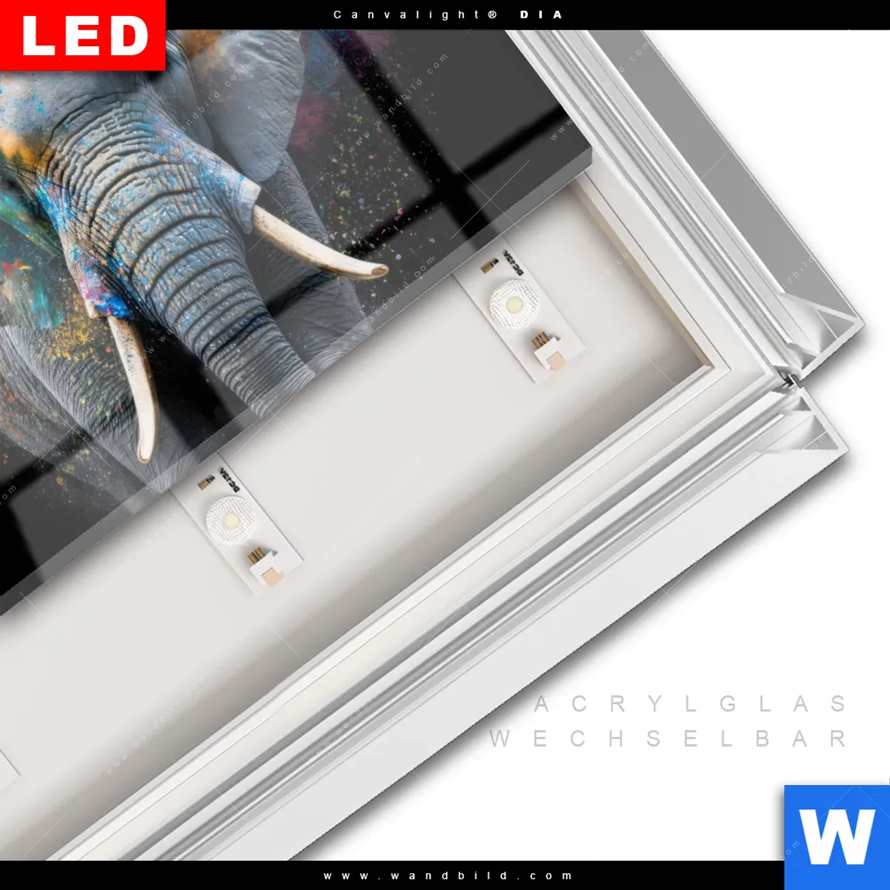Canvalight® DIA Leuchtbild | Bunter Elefant | Querformat