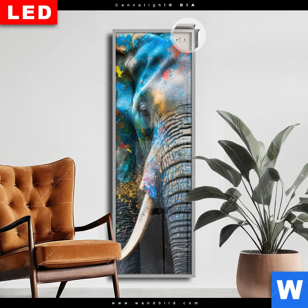 Canvalight® DIA Leuchtbild | Bunter Elefant | Schmal
