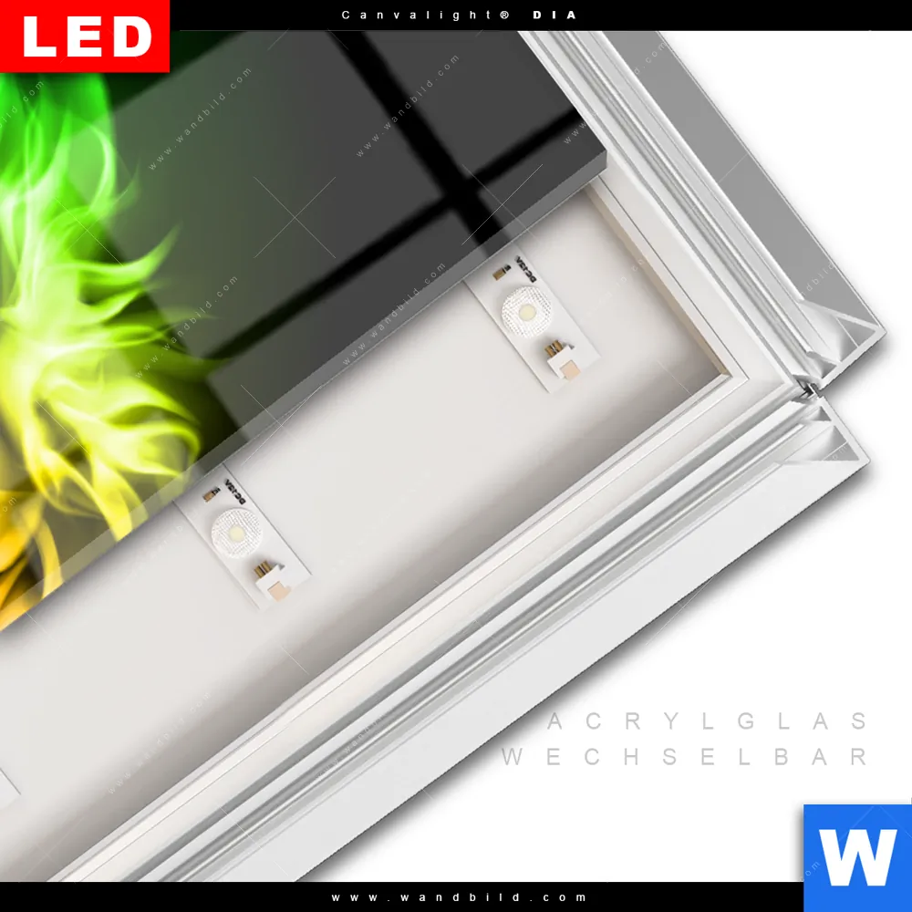 LED-Glasbild mit austauschbarem Acrylglas-Druck (Wechselbild)