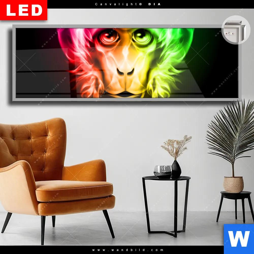 Canvalight® DIA Leuchtbild | Bunter Feuer-Affe | Panorama
