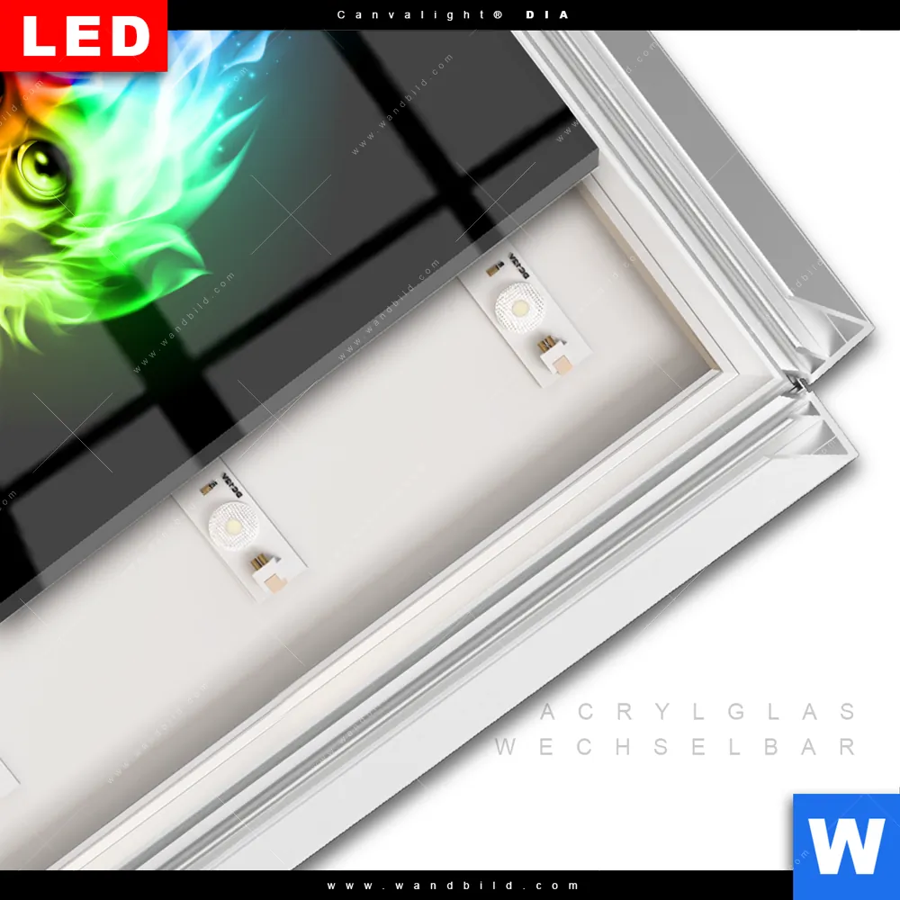 LED-Glasbild mit austauschbarem Acrylglas-Druck (Wechselbild)