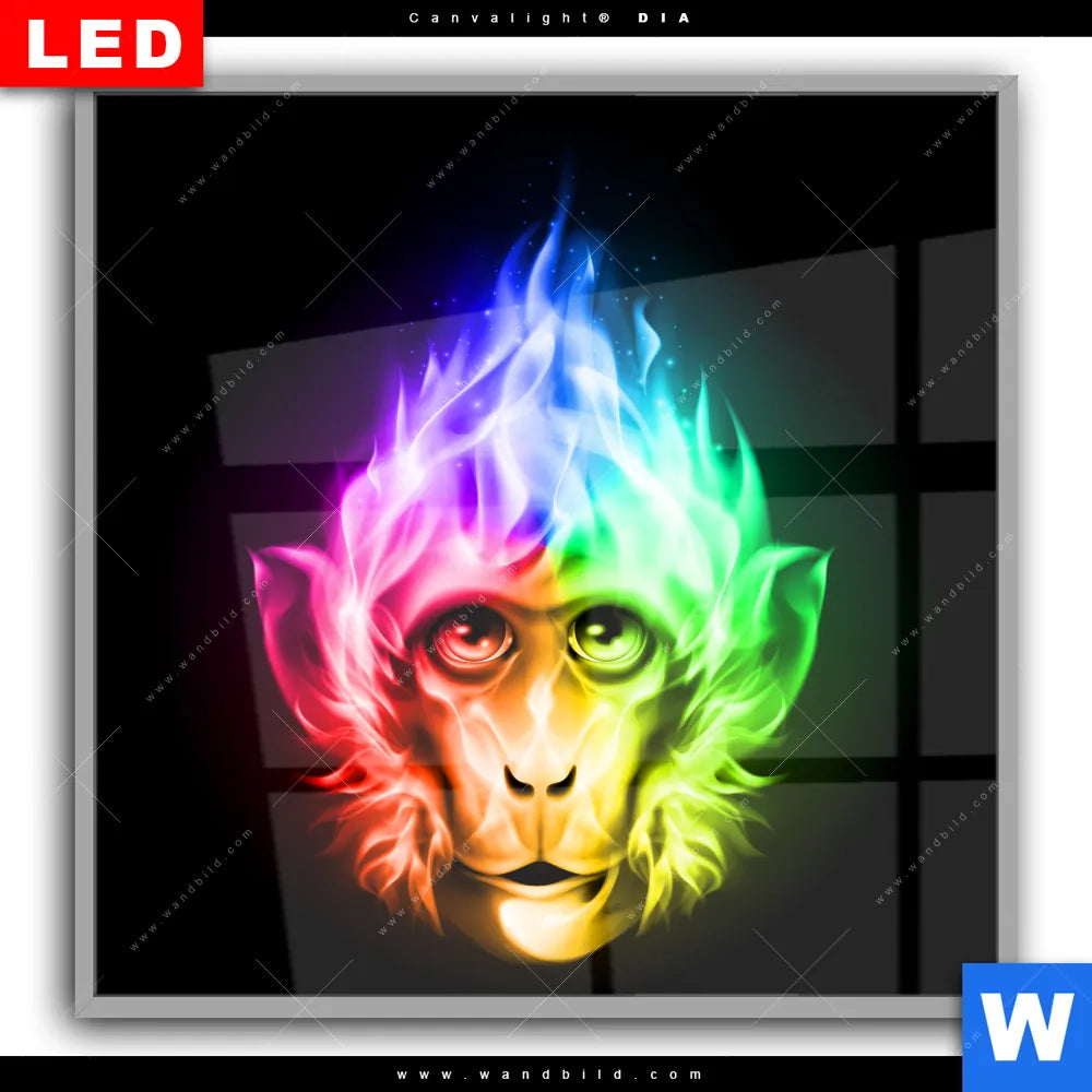 Canvalight® DIA Leuchtbild | Bunter Feuer-Affe | Quadrat