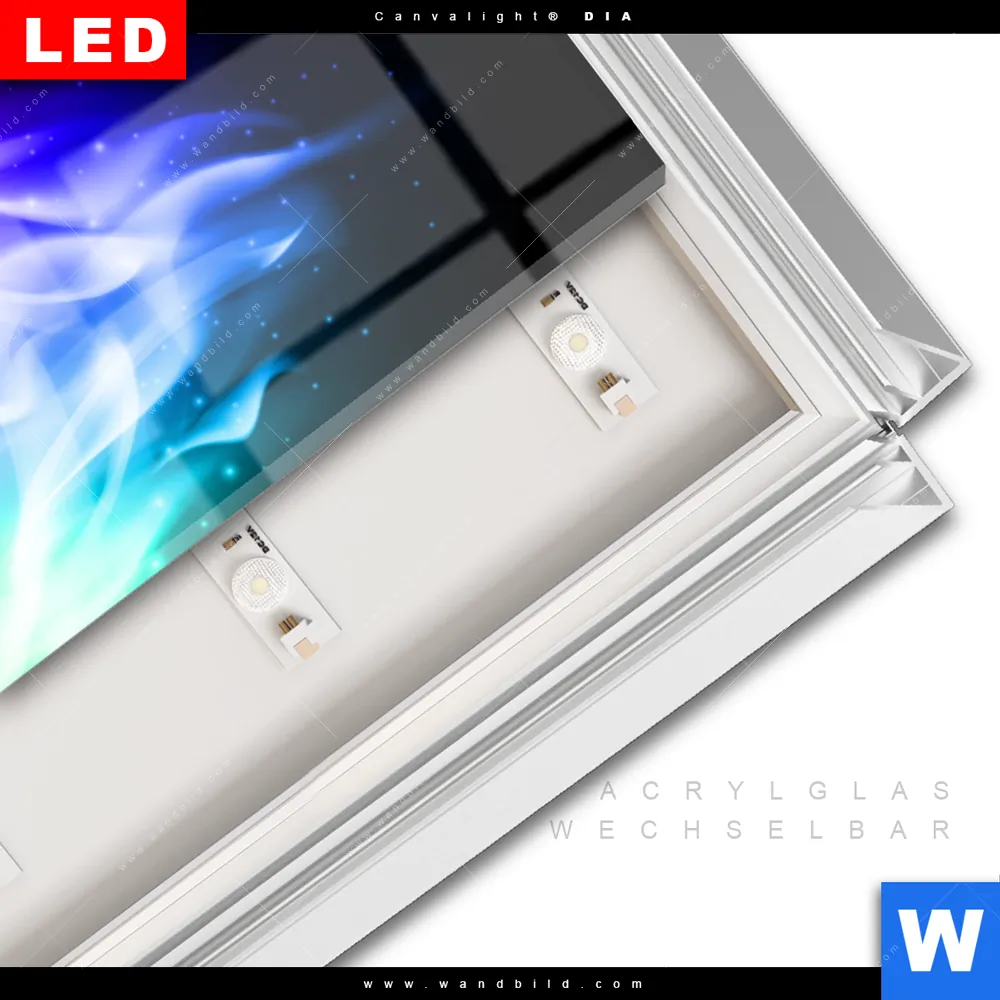 LED-Glasbild mit austauschbarem Acrylglas-Druck (Wechselbild)