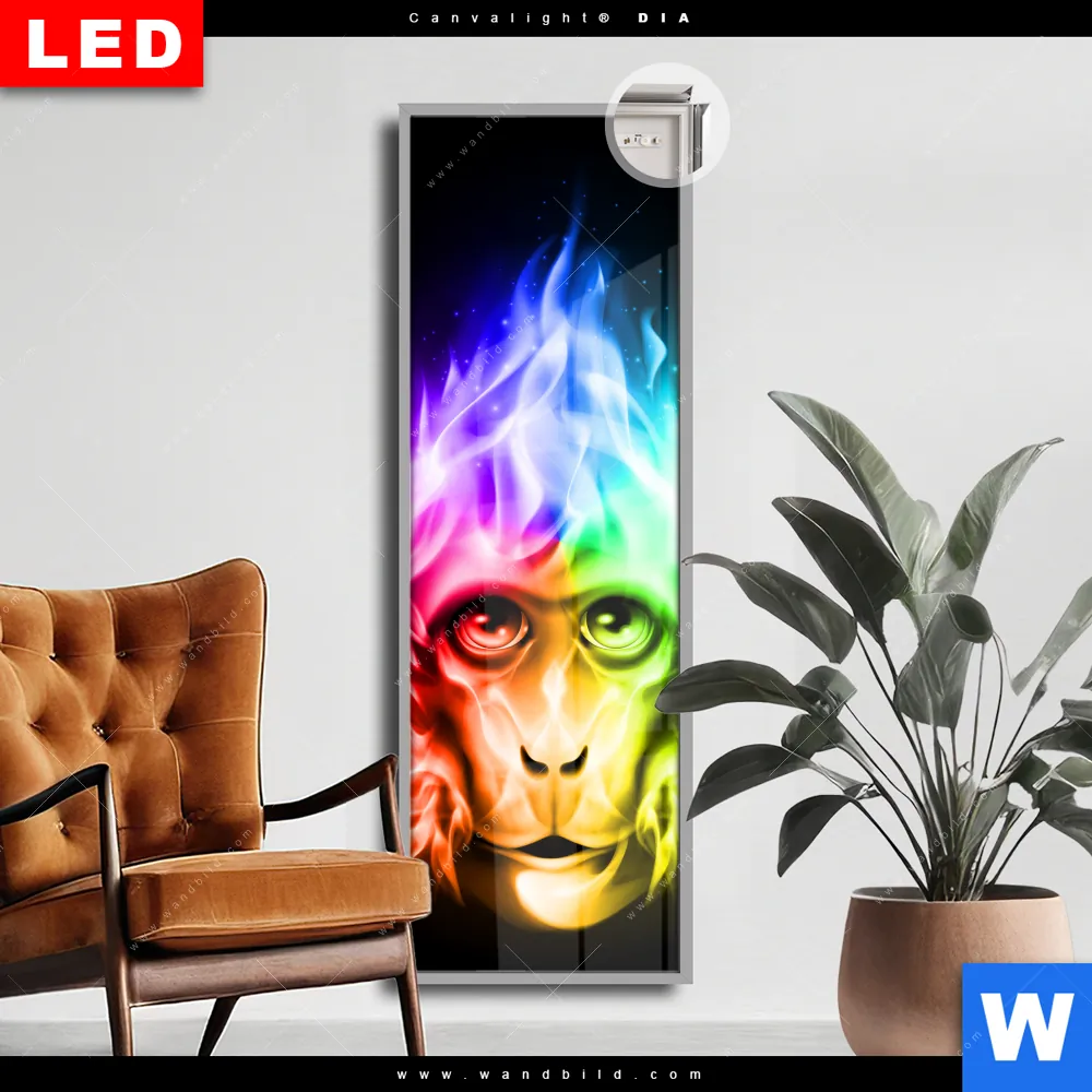 Canvalight® DIA Leuchtbild | Bunter Feuer-Affe | Schmal