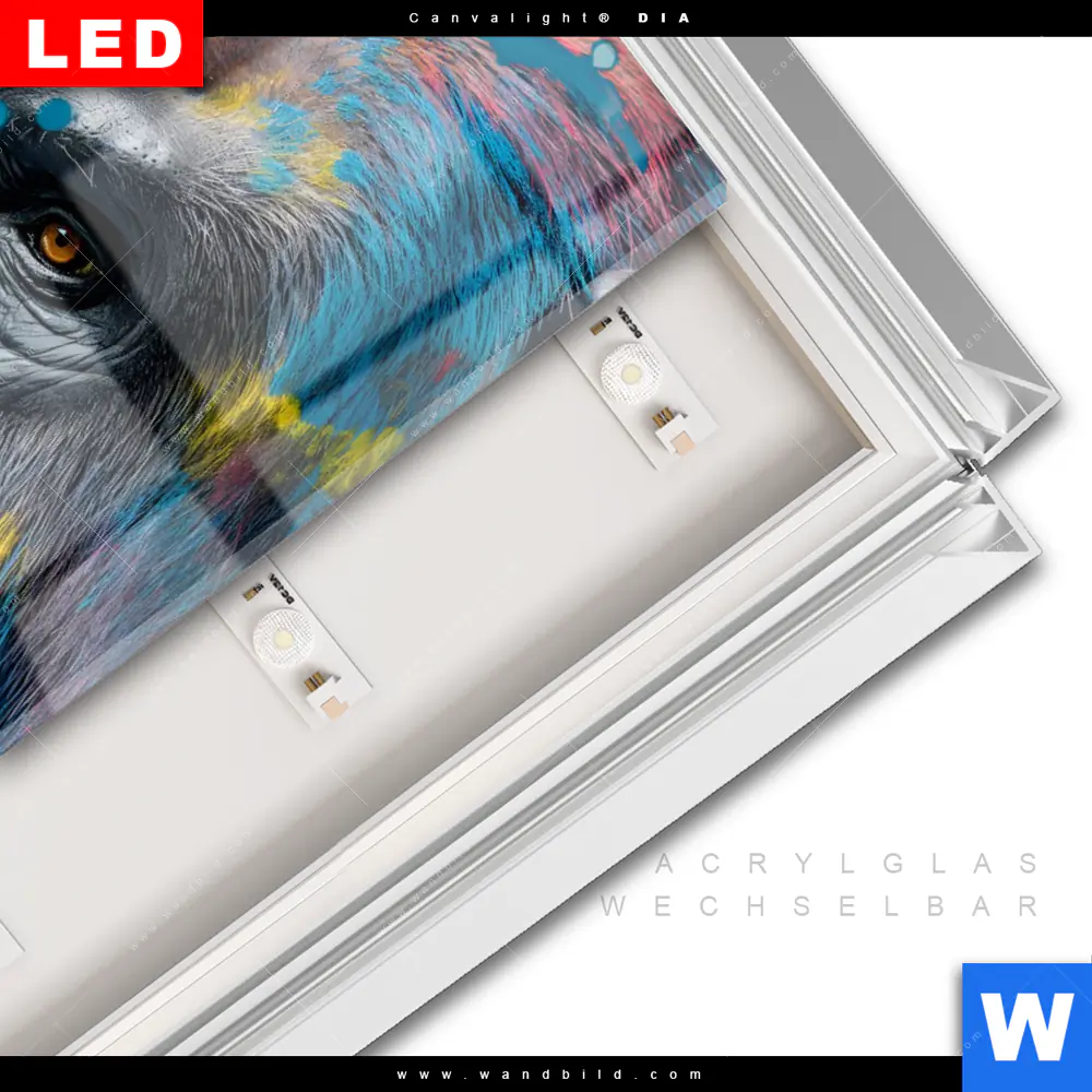 LED-Glasbild mit austauschbarem Acrylglas-Druck (Wechselbild)
