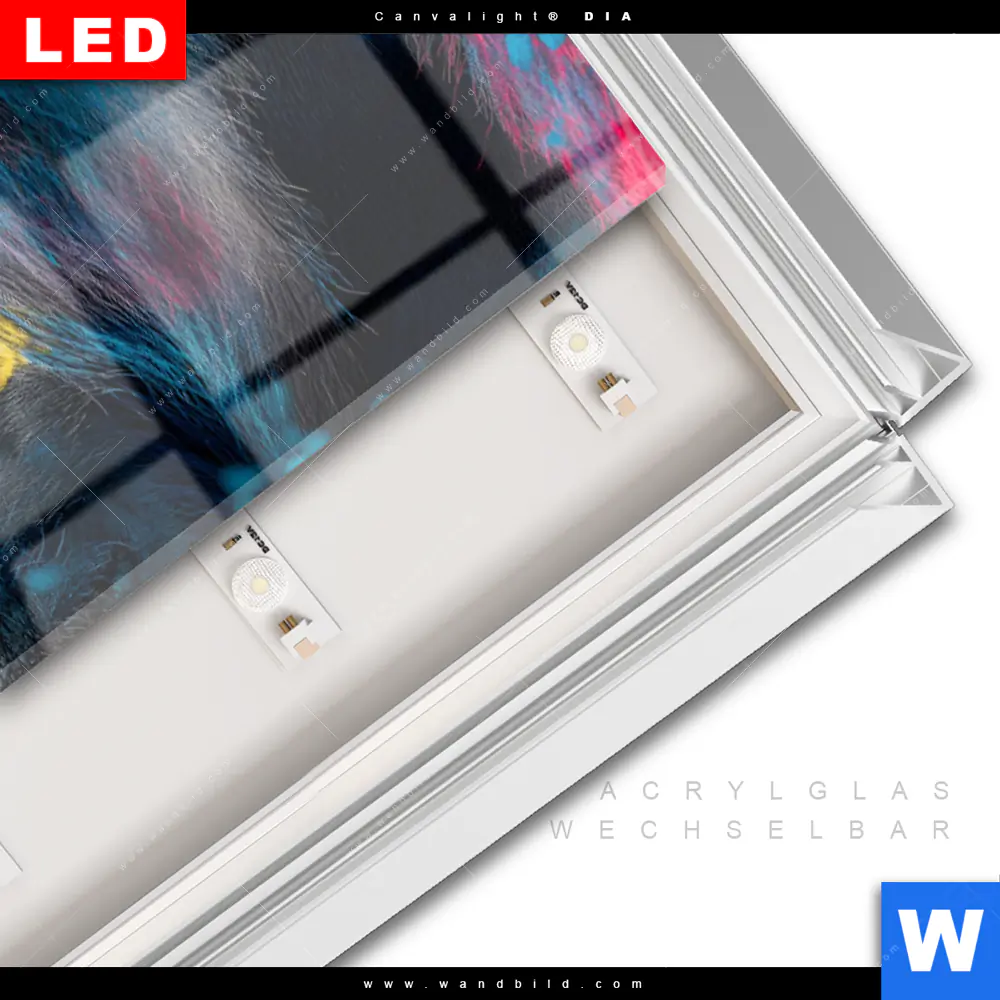 LED-Glasbild mit austauschbarem Acrylglas-Druck (Wechselbild)