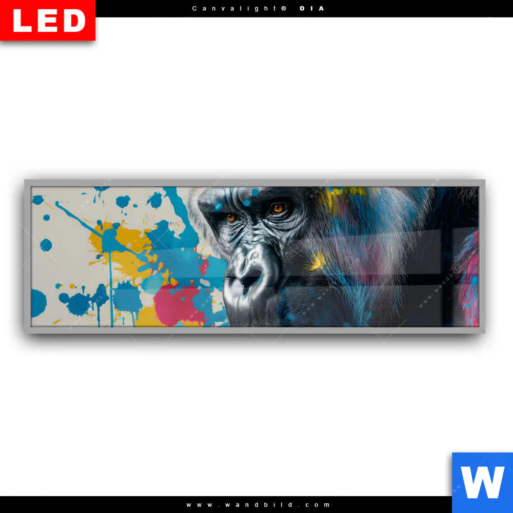 Canvalight® DIA Leuchtbild | Bunter Gorilla mit Farbspritzern | Panorama