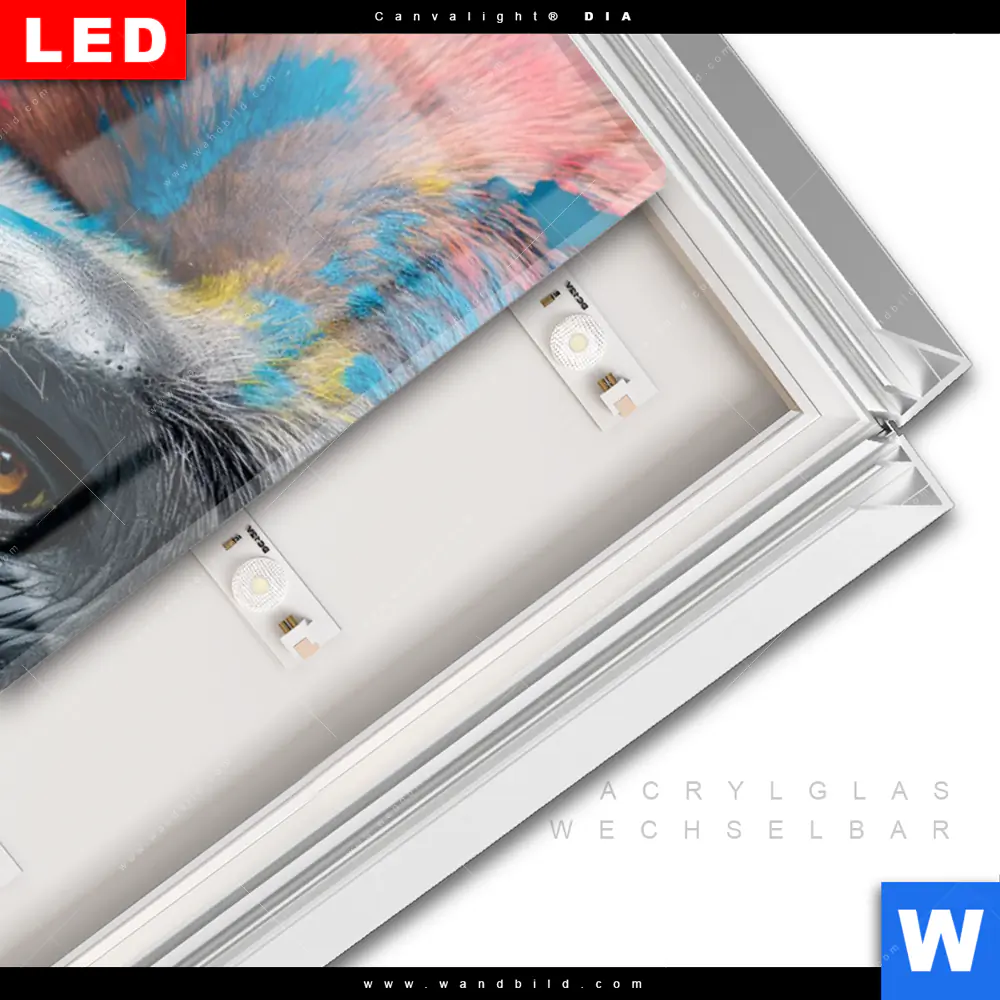 LED-Glasbild mit austauschbarem Acrylglas-Druck (Wechselbild)