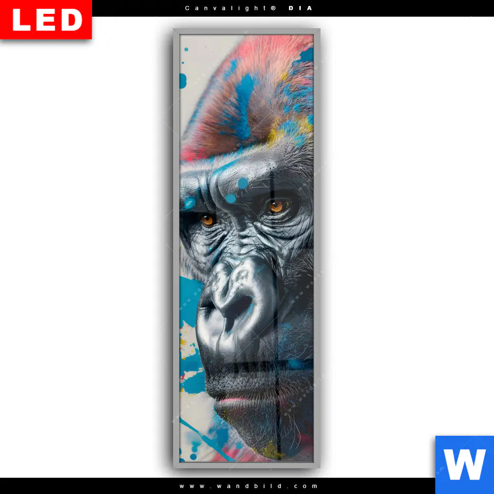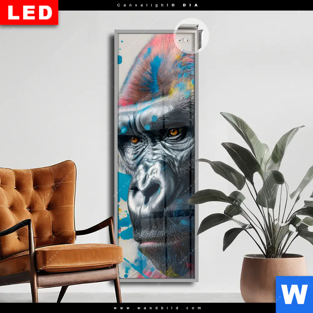 Canvalight® DIA Leuchtbild | Bunter Gorilla mit Farbspritzern | Schmal