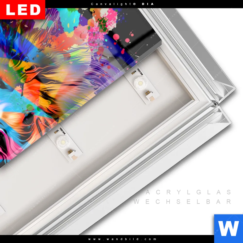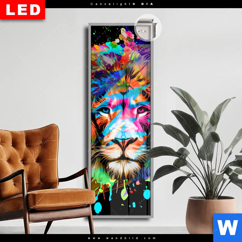 Canvalight® DIA Leuchtbild | Bunter Löwe Schwarz | Schmal