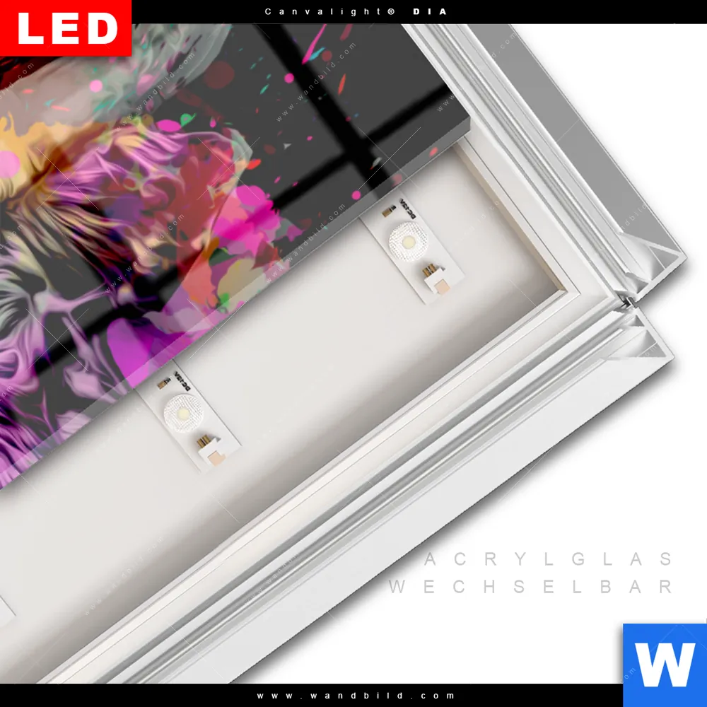 LED-Glasbild mit austauschbarem Acrylglas-Druck (Wechselbild)