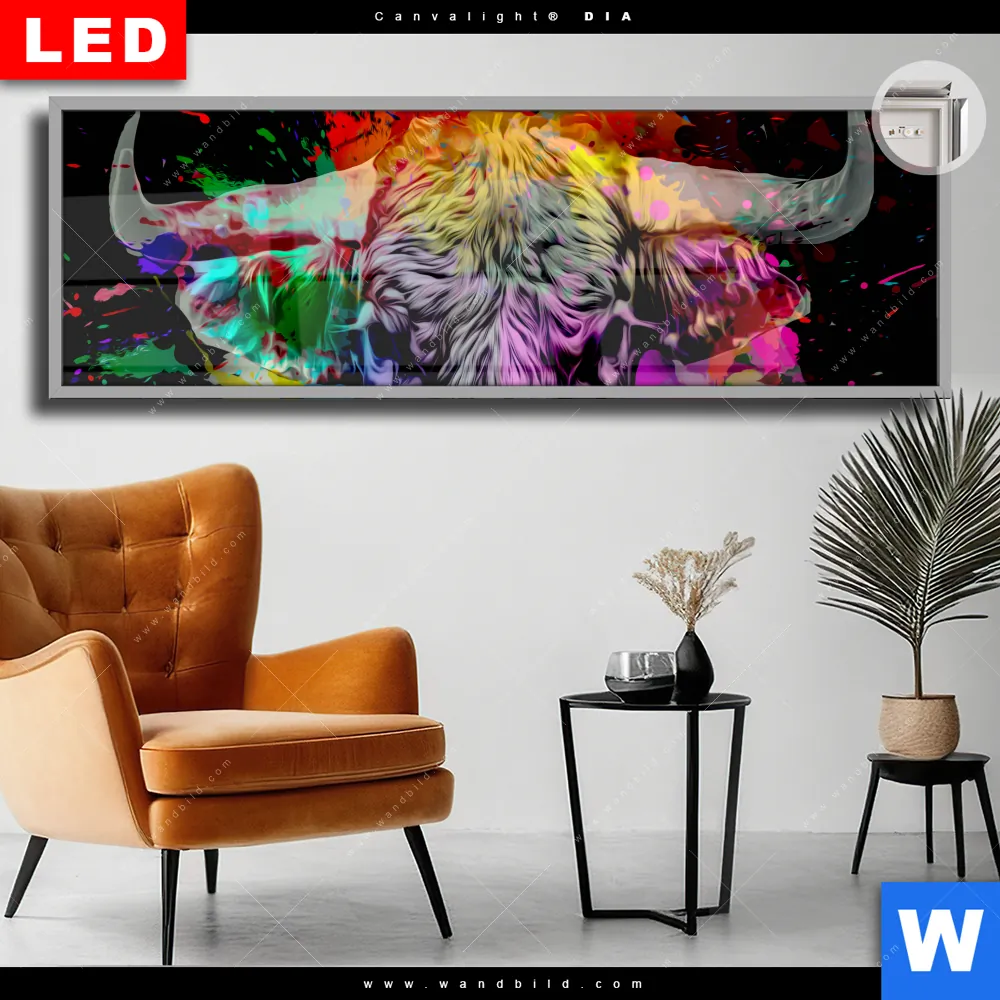 Canvalight® DIA Leuchtbild | Bunter Stier Schwarz | Panorama