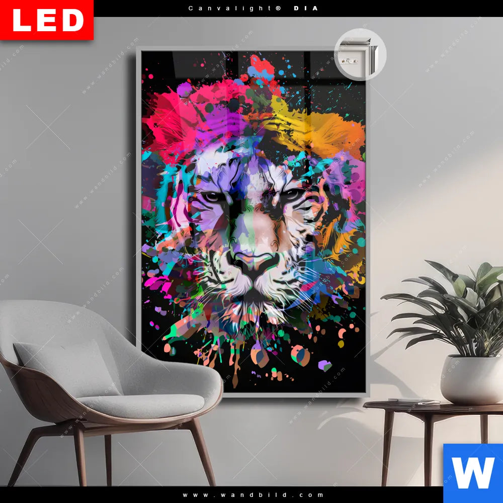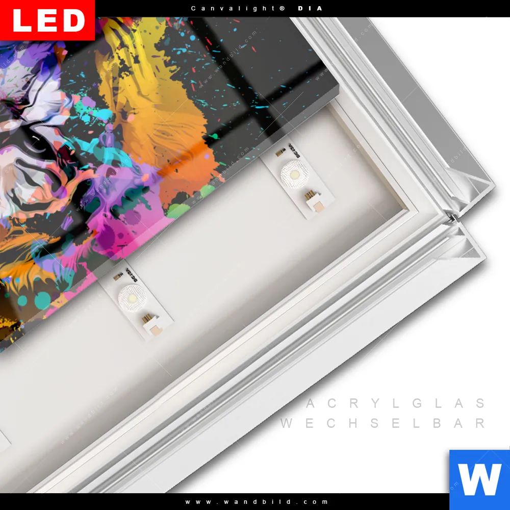 Canvalight® DIA Leuchtbild | Bunter Tiger Schwarz | Hochformat