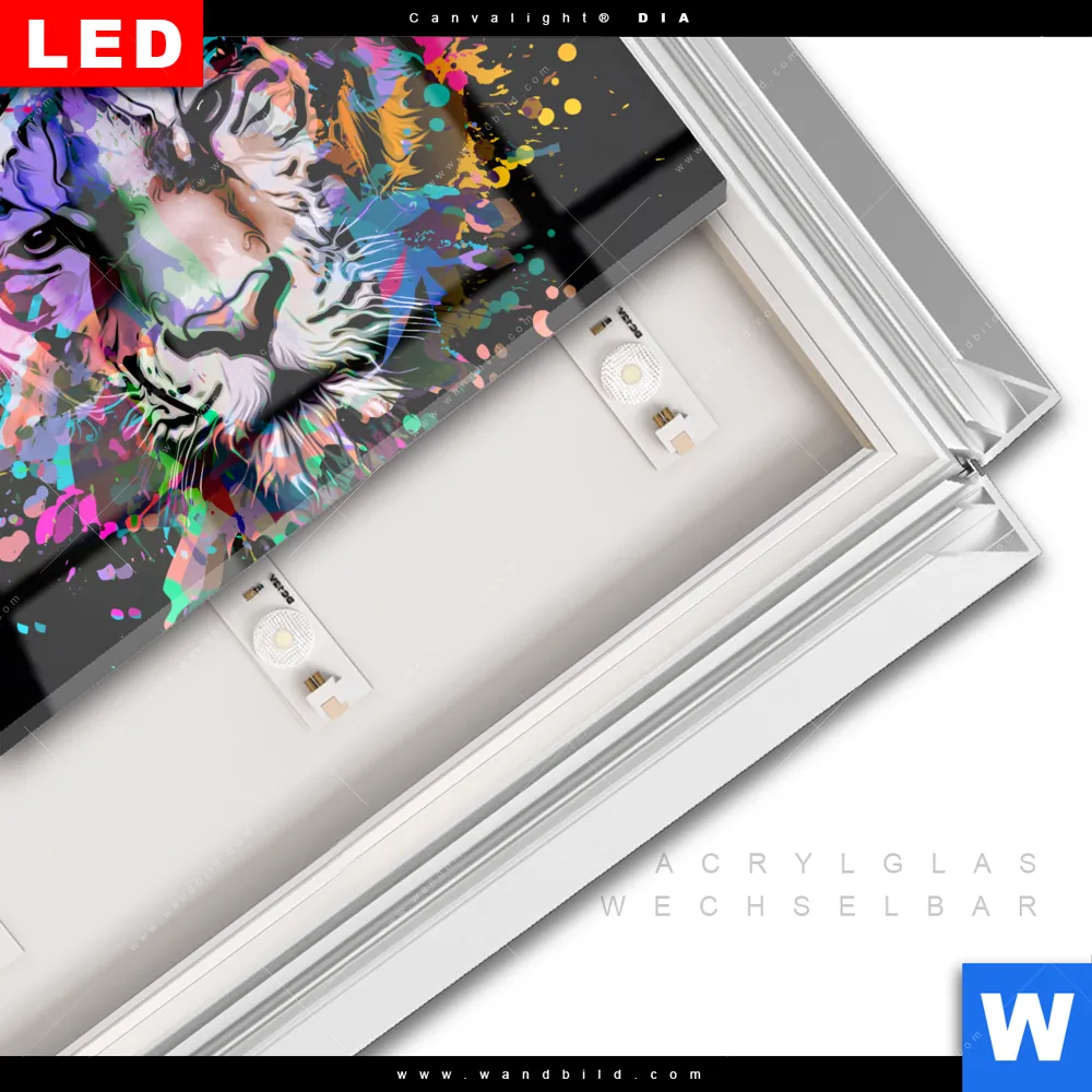 LED-Glasbild mit austauschbarem Acrylglas-Druck (Wechselbild)
