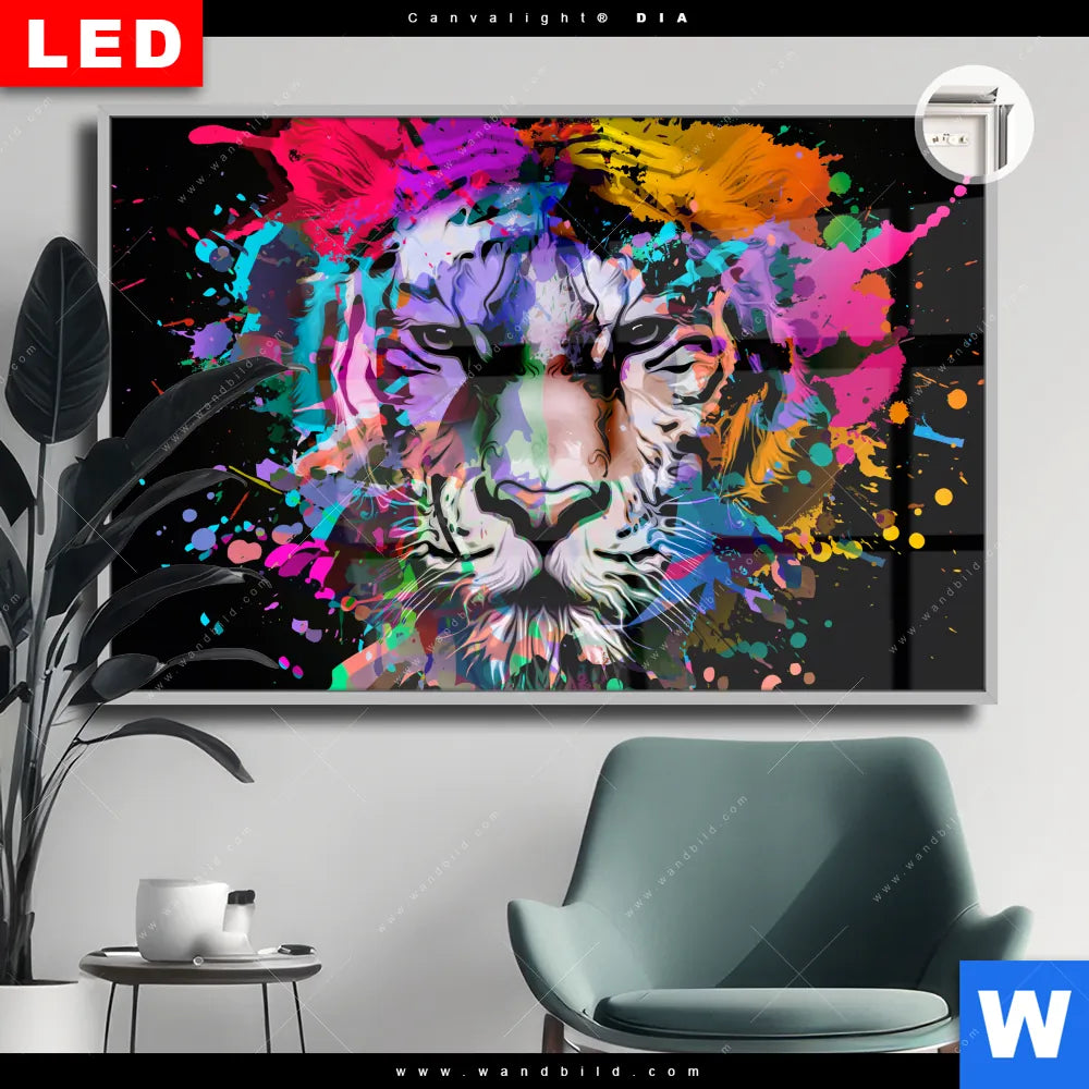Canvalight® DIA Leuchtbild | Bunter Tiger Schwarz | Querformat