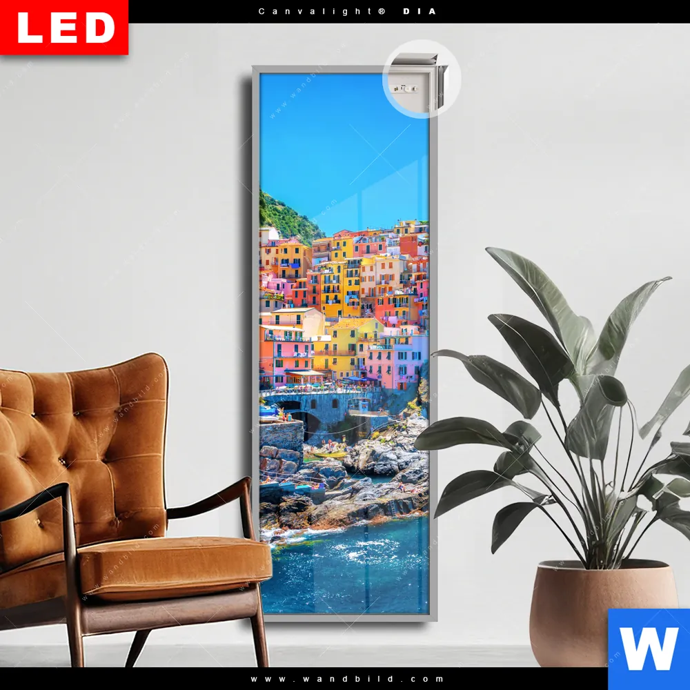 Canvalight® DIA Leuchtbild | Buntes Dorf Manarola | Schmal