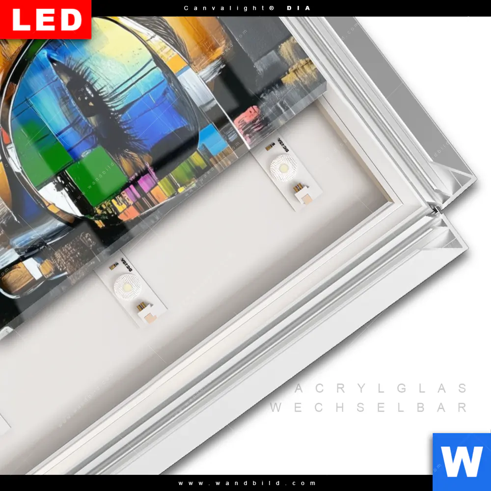 LED-Glasbild mit austauschbarem Acrylglas-Druck (Wechselbild)