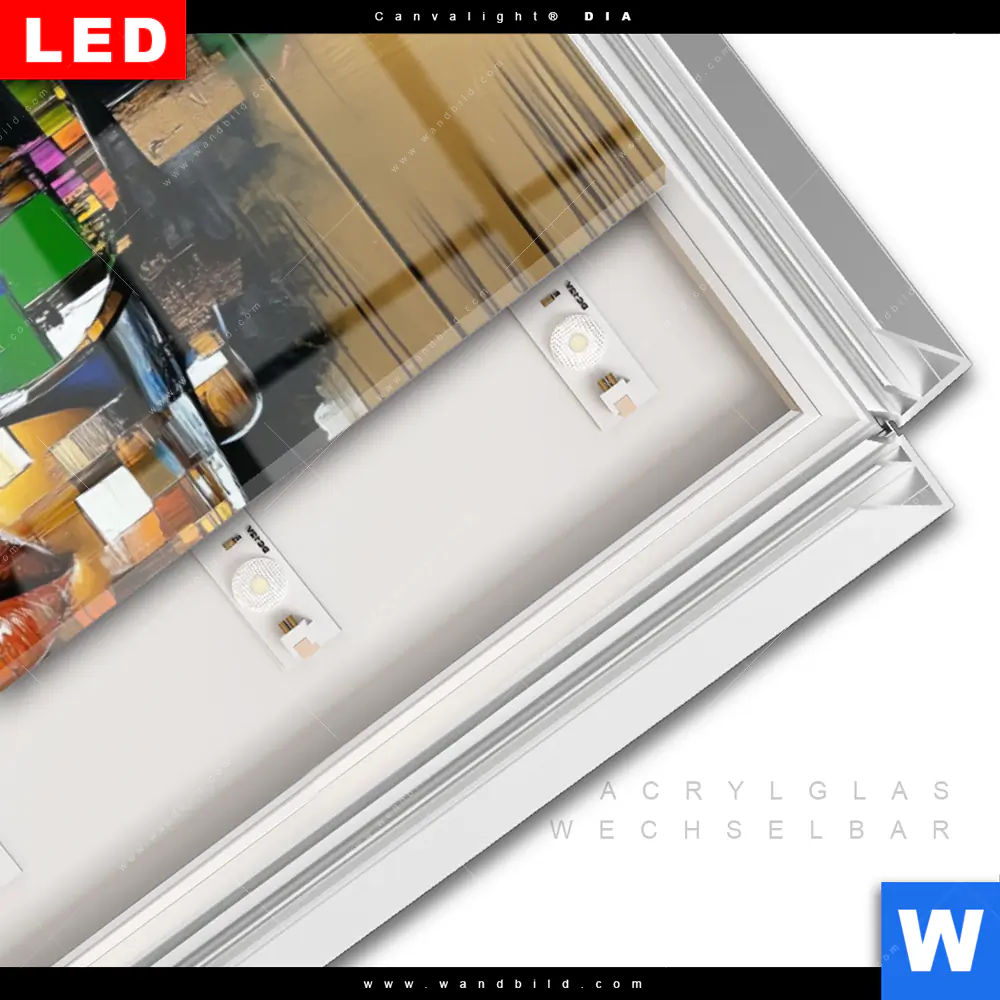 LED-Glasbild mit austauschbarem Acrylglas-Druck (Wechselbild)