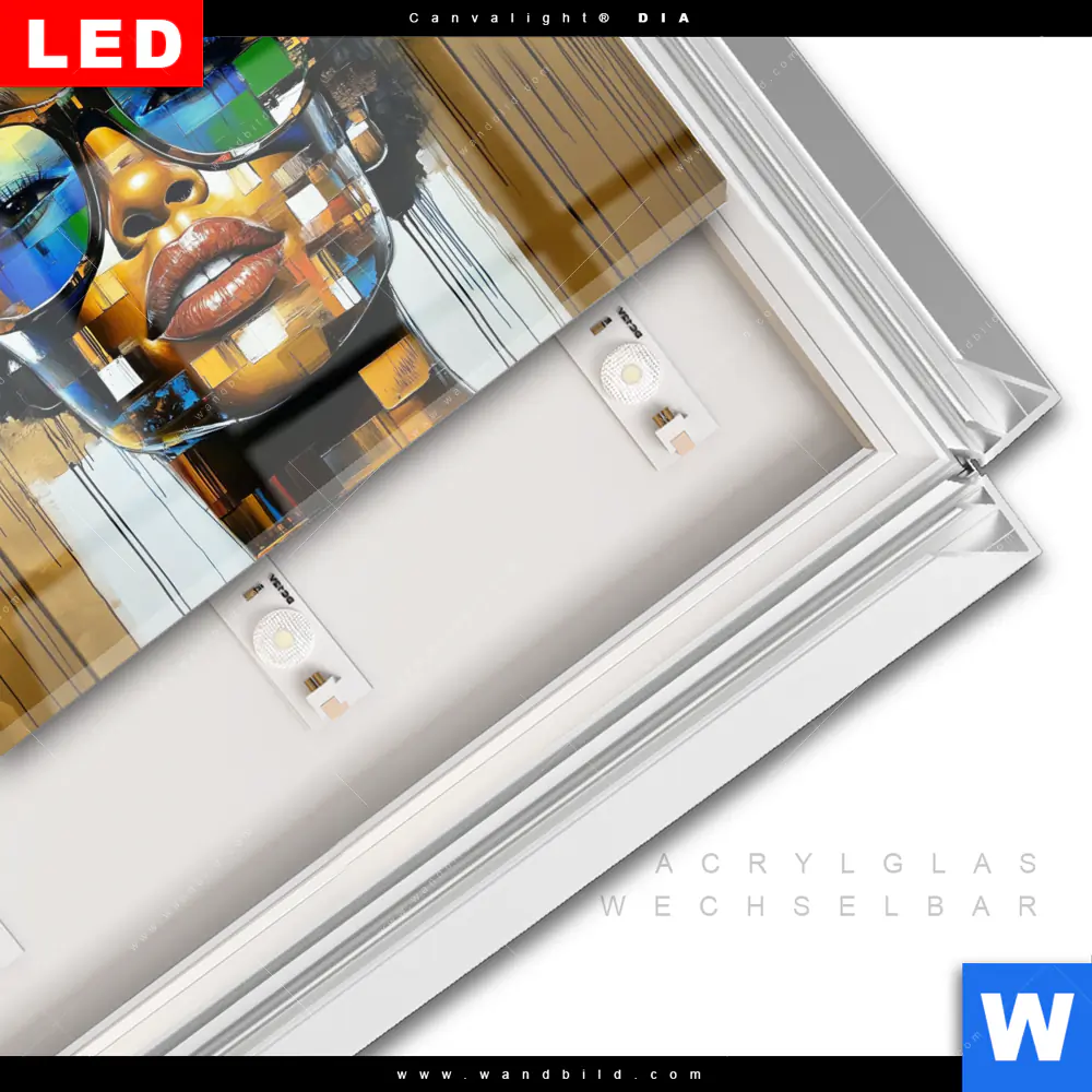 LED-Glasbild mit austauschbarem Acrylglas-Druck (Wechselbild)