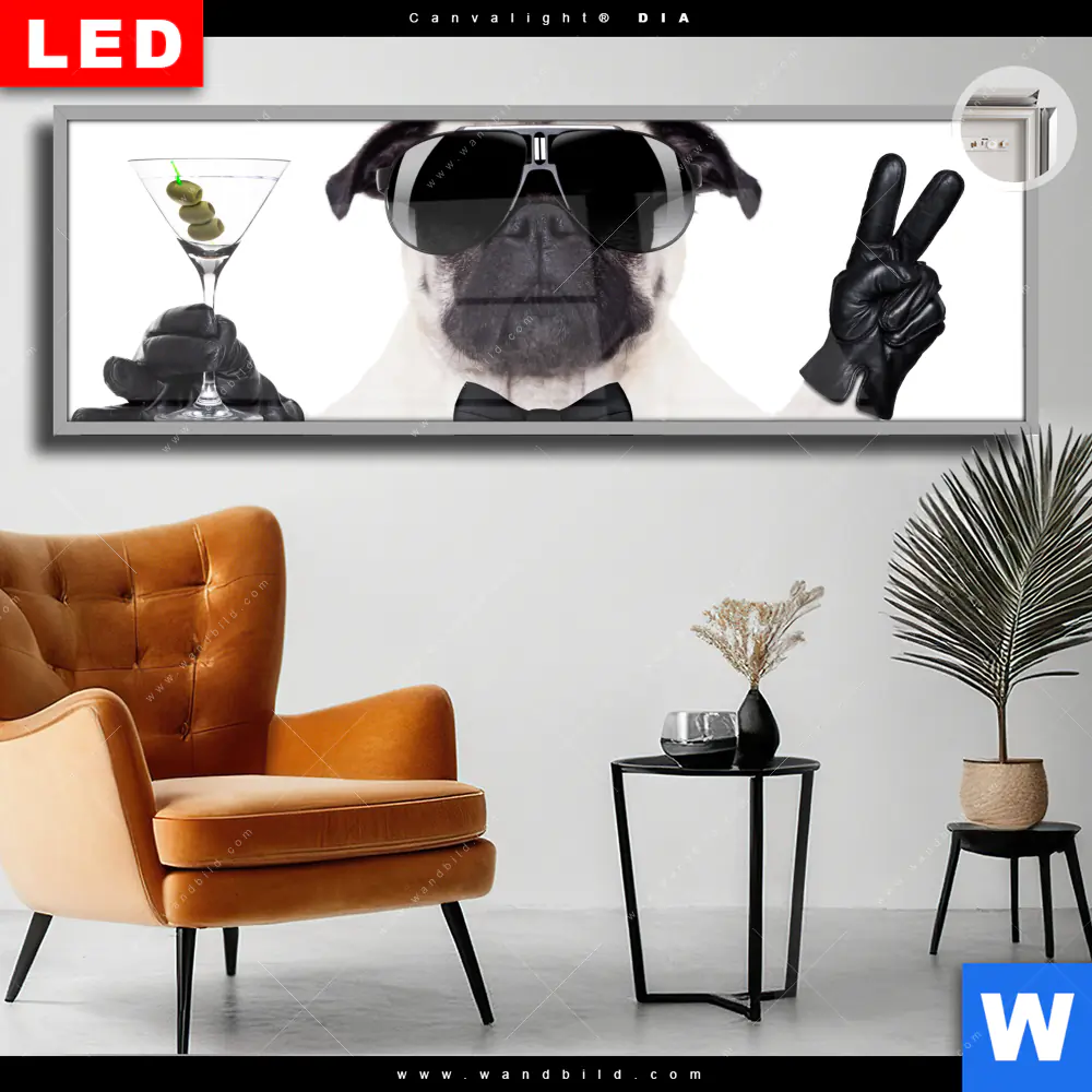 Canvalight® DIA Leuchtbild | Cooler Mops mit Martini | Panorama