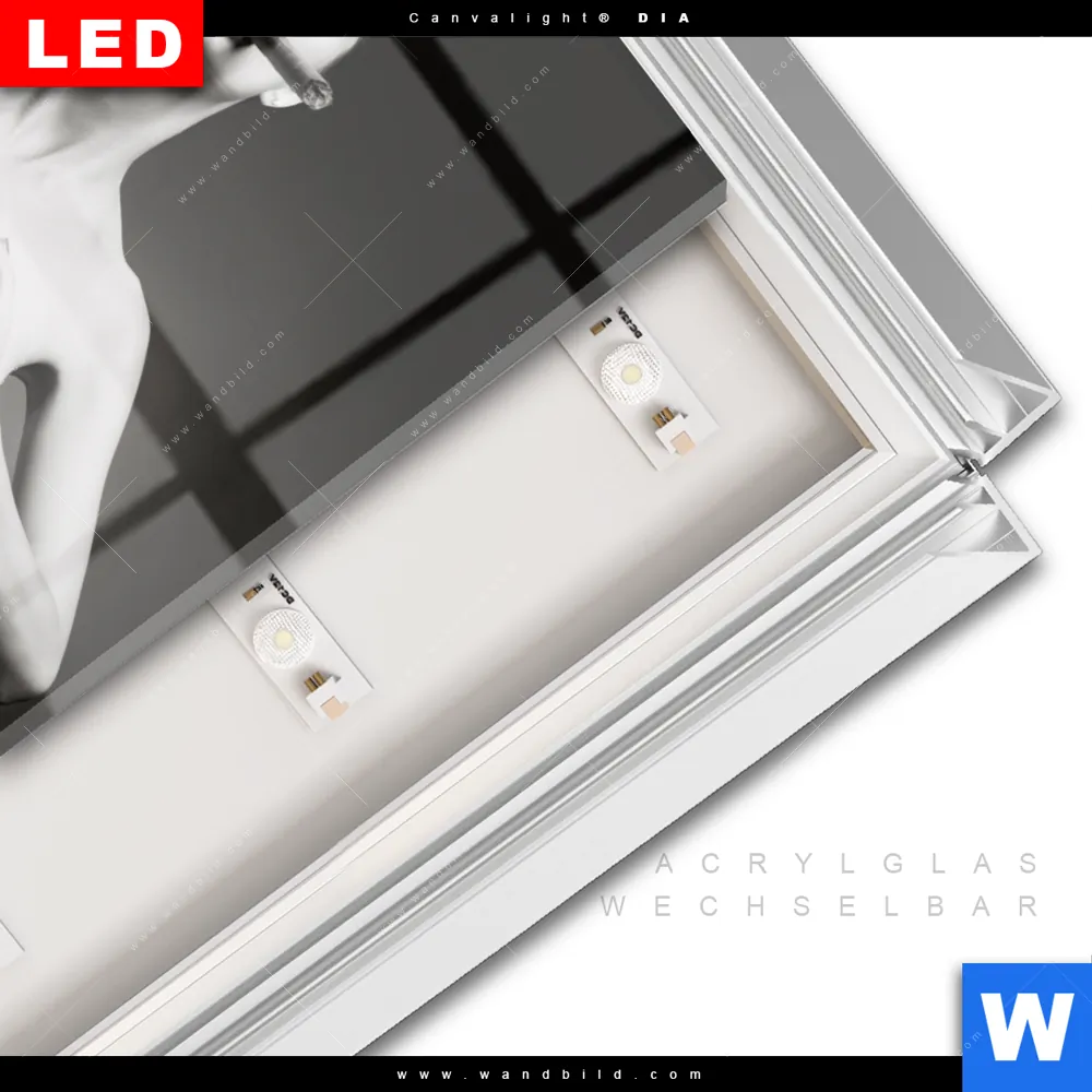 LED-Glasbild mit austauschbarem Acrylglas-Druck (Wechselbild)