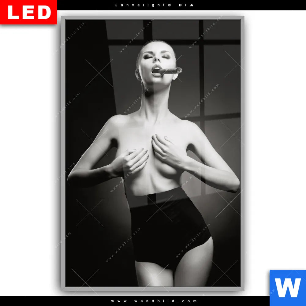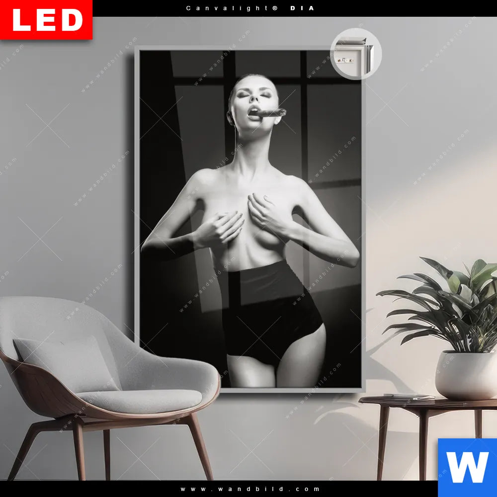 Canvalight® DIA Leuchtbild | Dame mit Zigarre | Hochformat