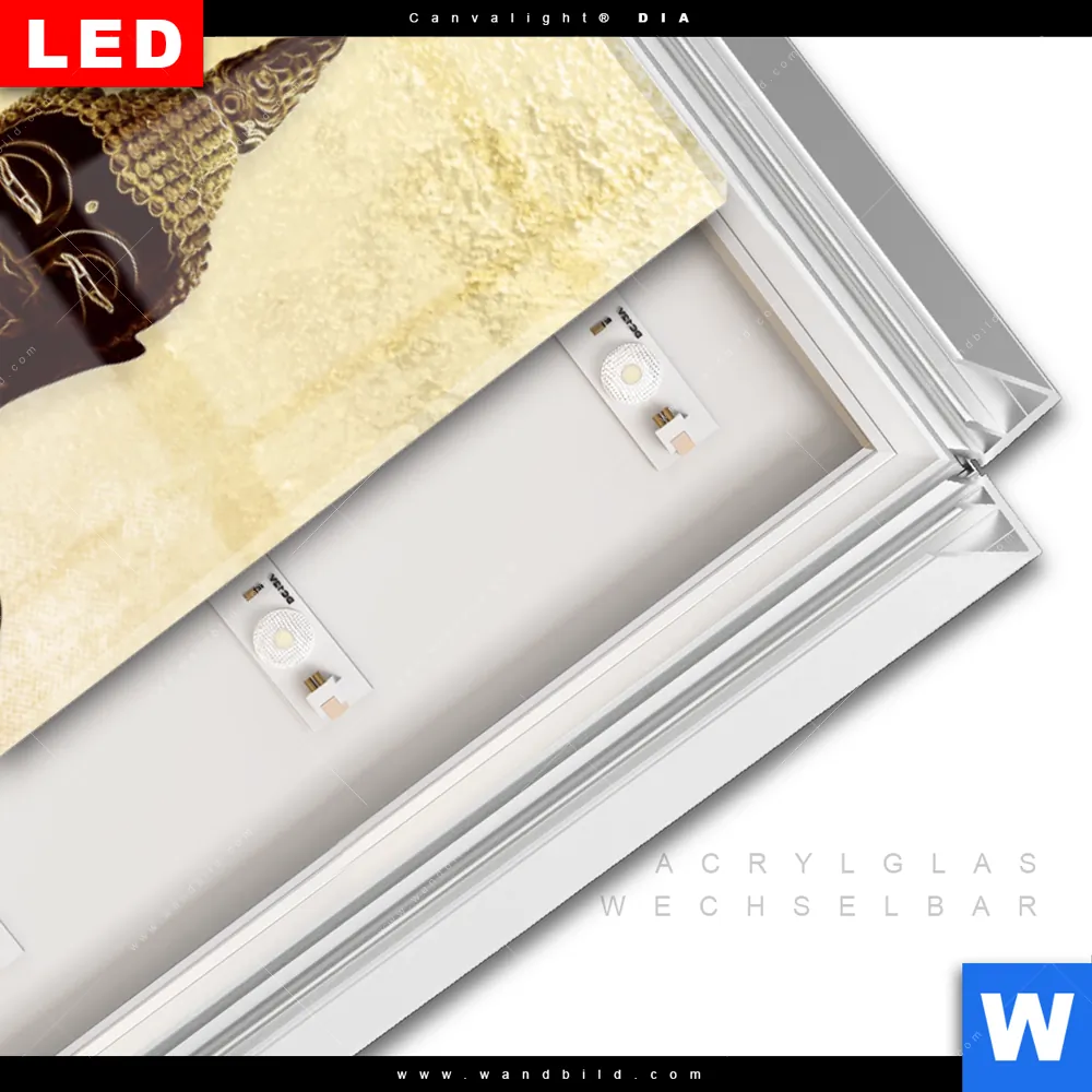 LED-Glasbild mit austauschbarem Acrylglas-Druck (Wechselbild)