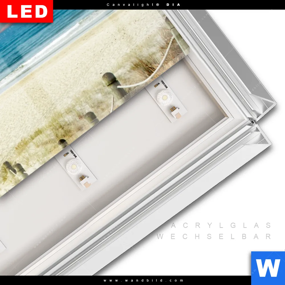 LED-Glasbild mit austauschbarem Acrylglas-Druck (Wechselbild)